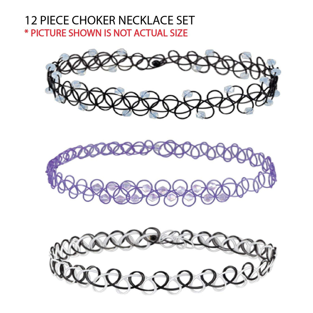 12PCS Necklace Gothic Henna Tattoo Stretch Elastic Jewelry Value Pack