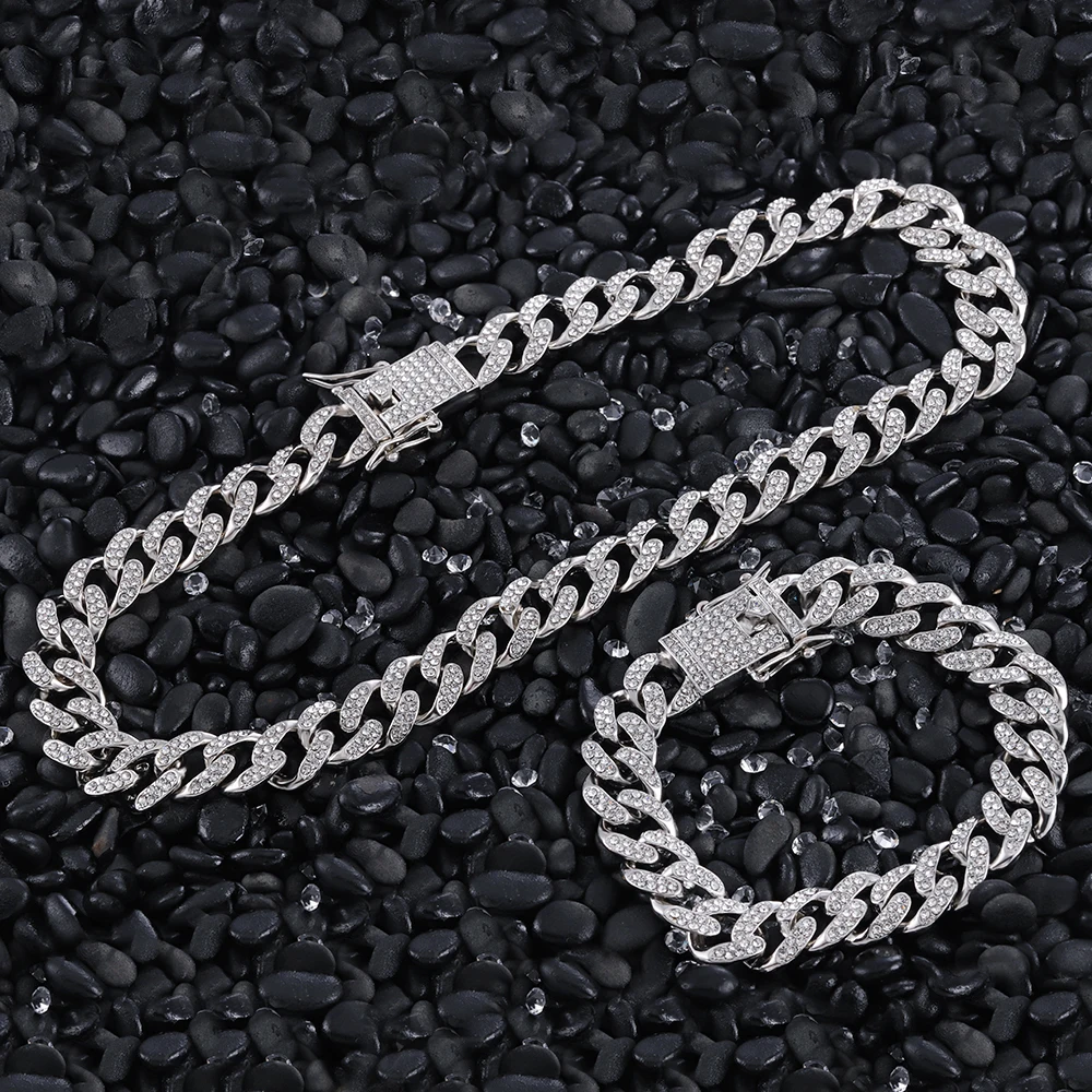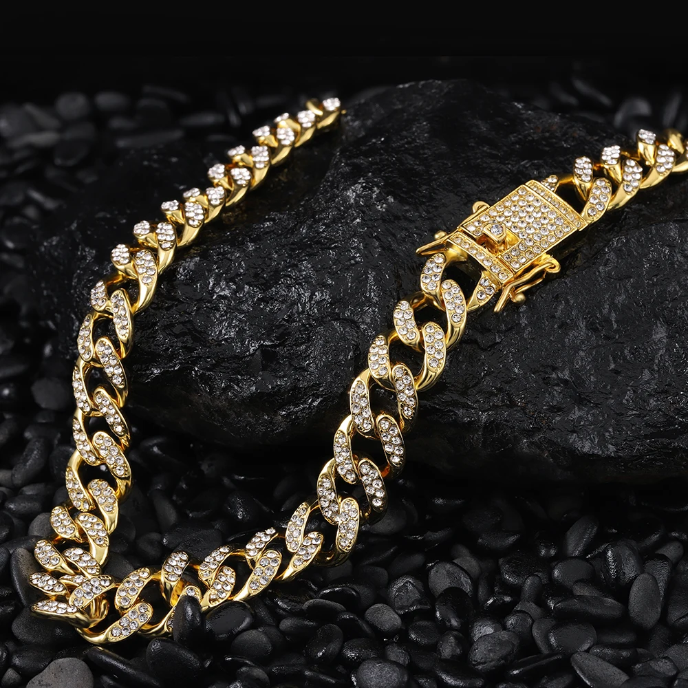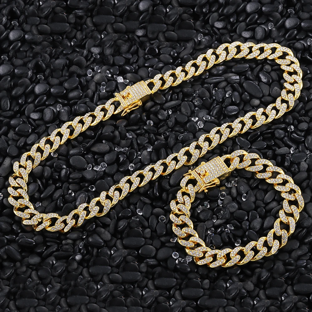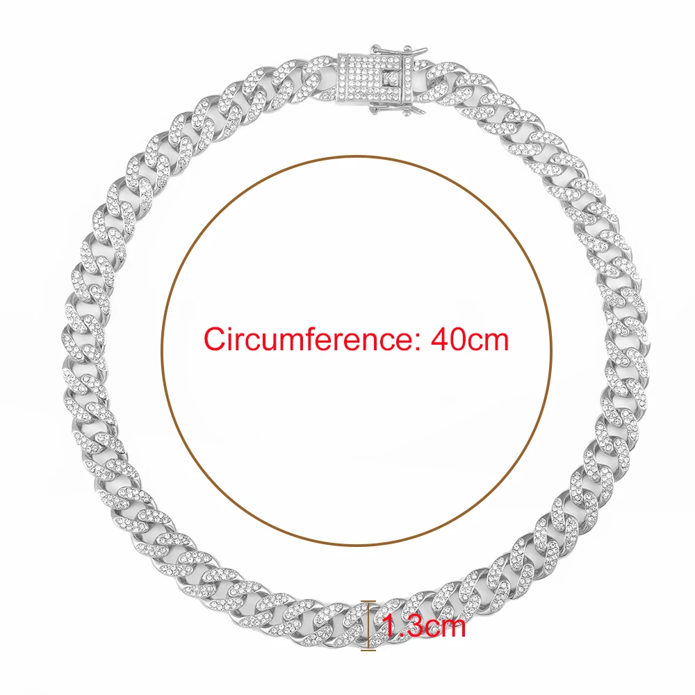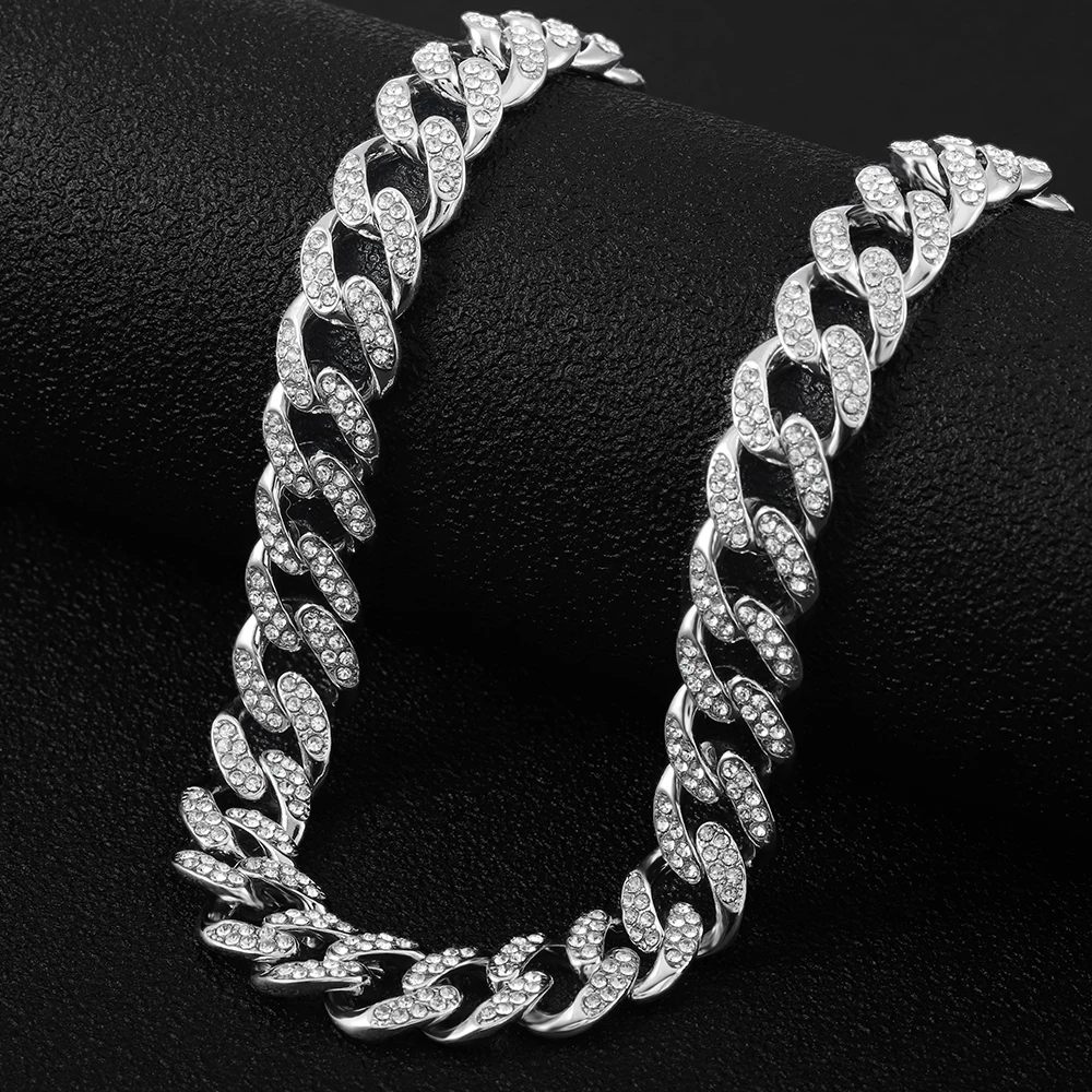 13mm Hip Hop Miami Curb Cuban Chain Necklace Golden Iced Out chain Rhinestones CZ Rapper Link Silver Color Necklaces Men Jewelry