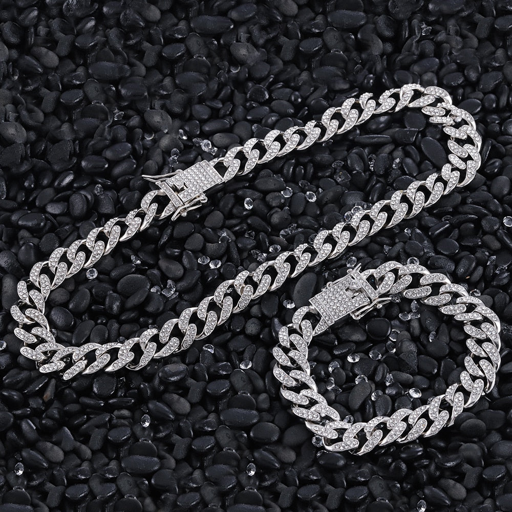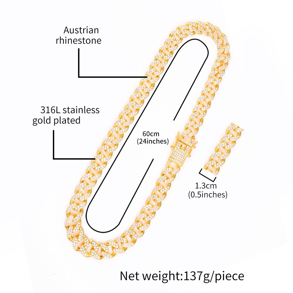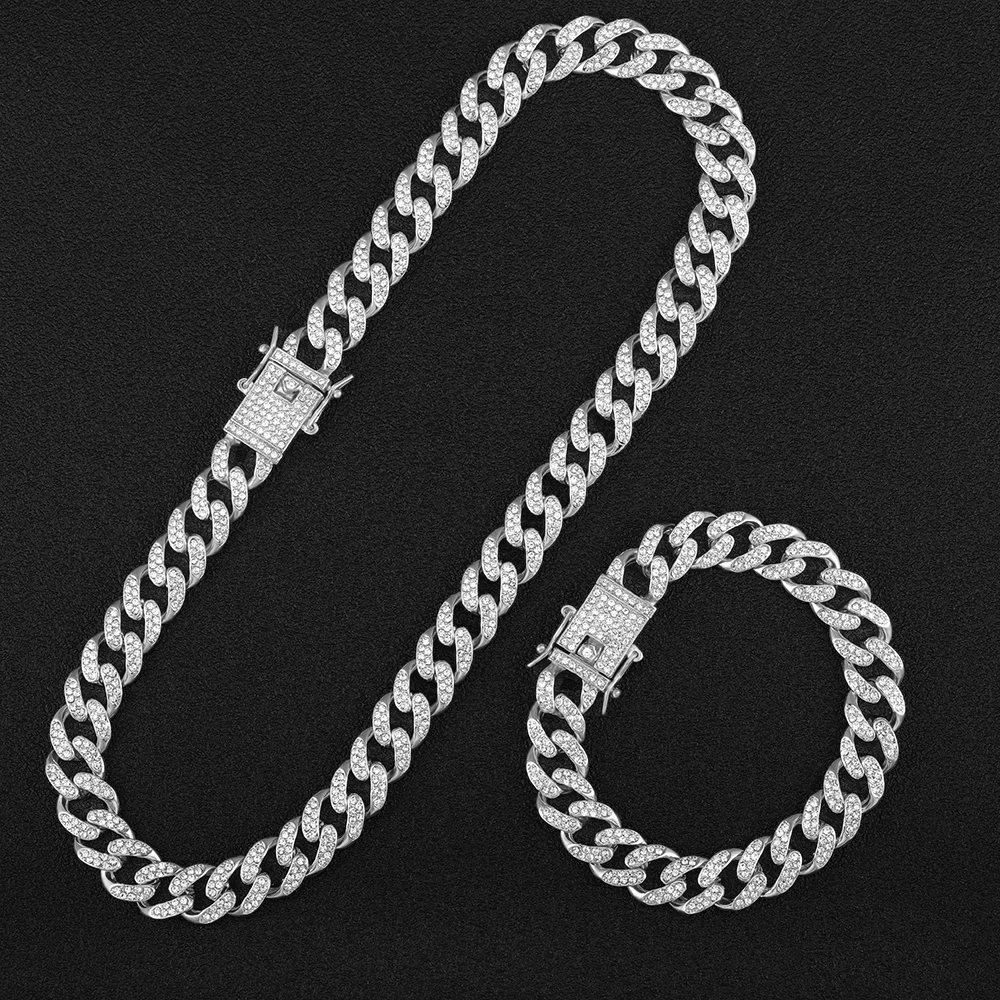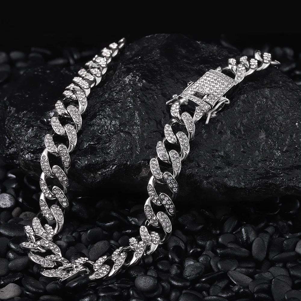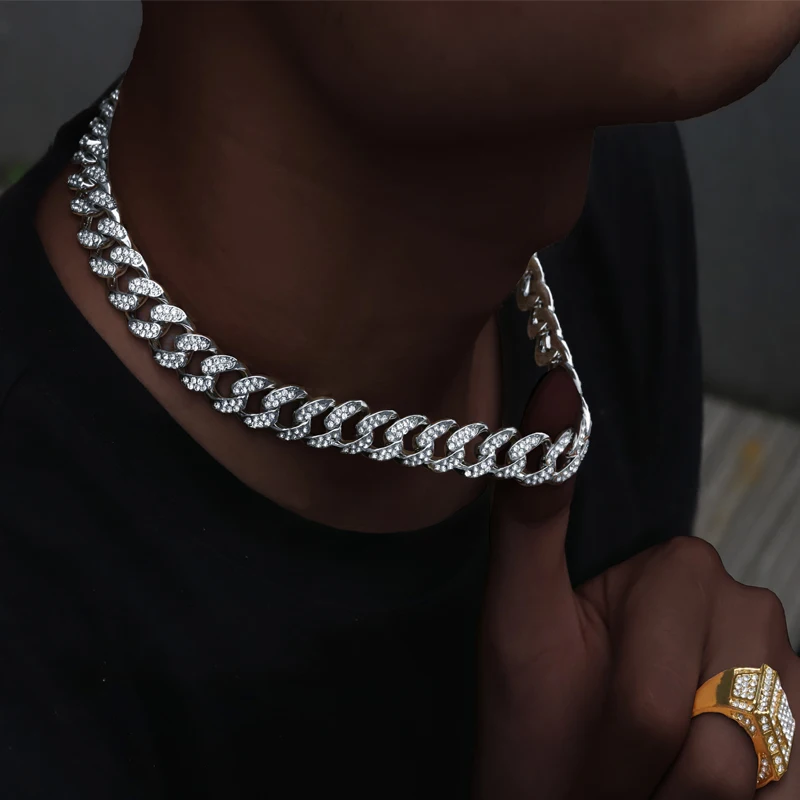 13mm Hip Hop Miami Curb Cuban Chain Necklace Golden Iced Out chain Rhinestones CZ Rapper Link Silver Color Necklaces Men Jewelry