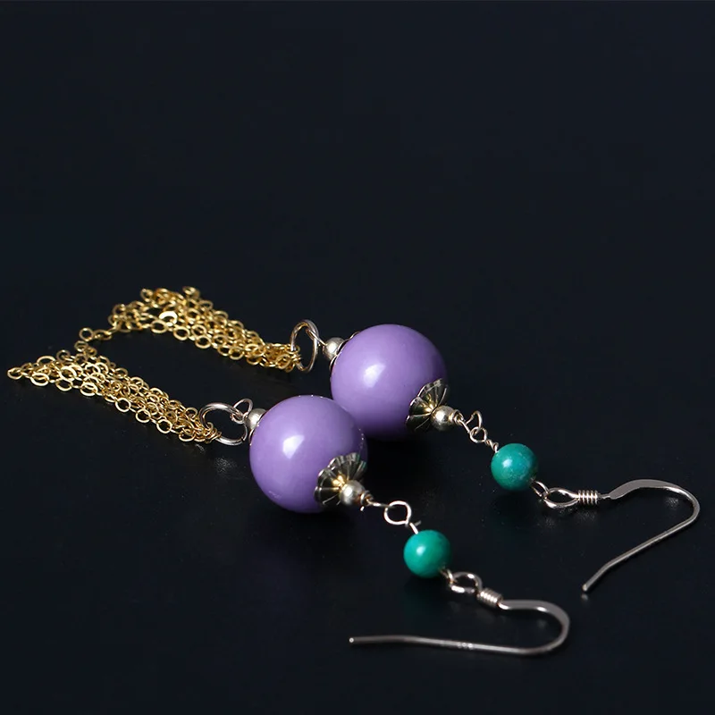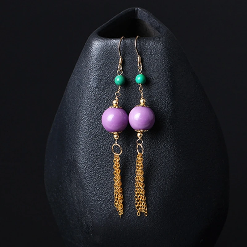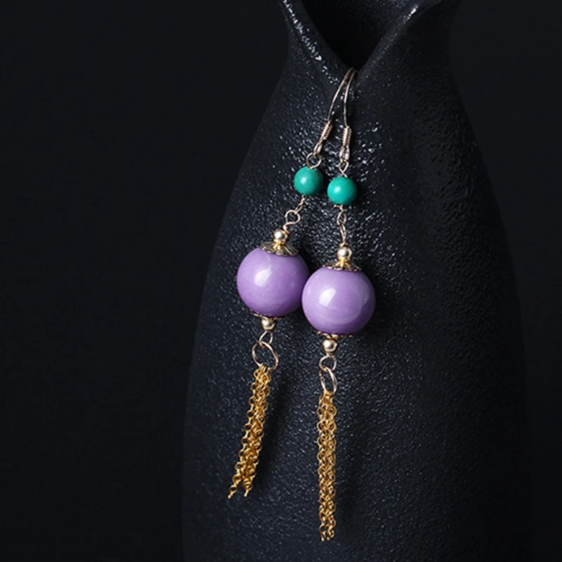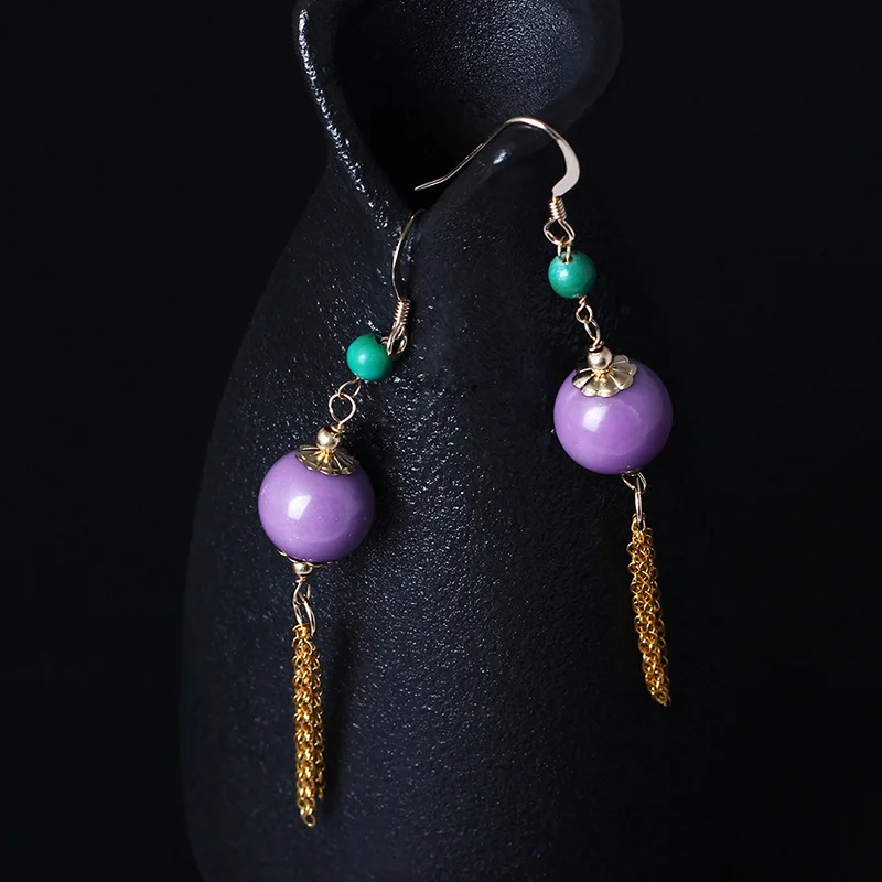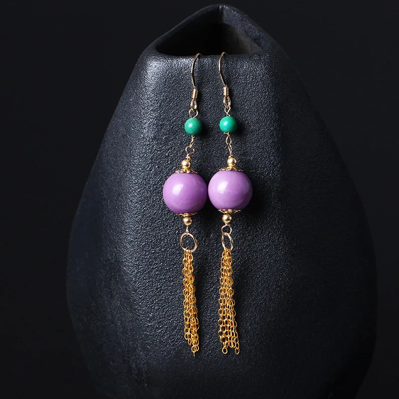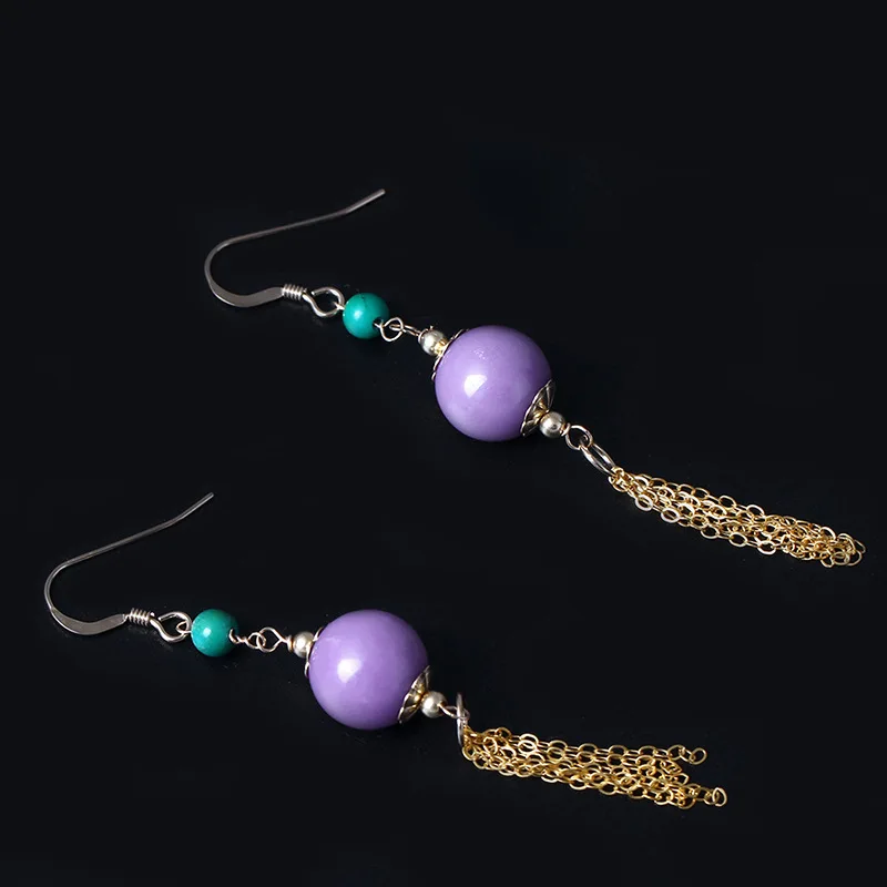 14K gold Mica-Quartz lapis drop earrings length tassel spring and summer series elegant design earrigns for women charms jewelry