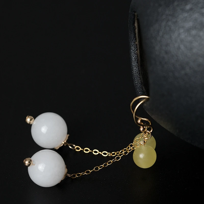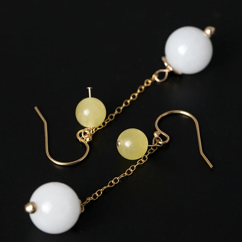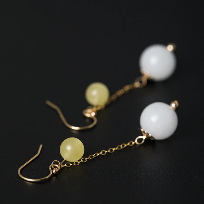 14K gold white jade beeswax earrings quality jade natural beeswax fashion trendy elegant women drop earrings charms jewelry