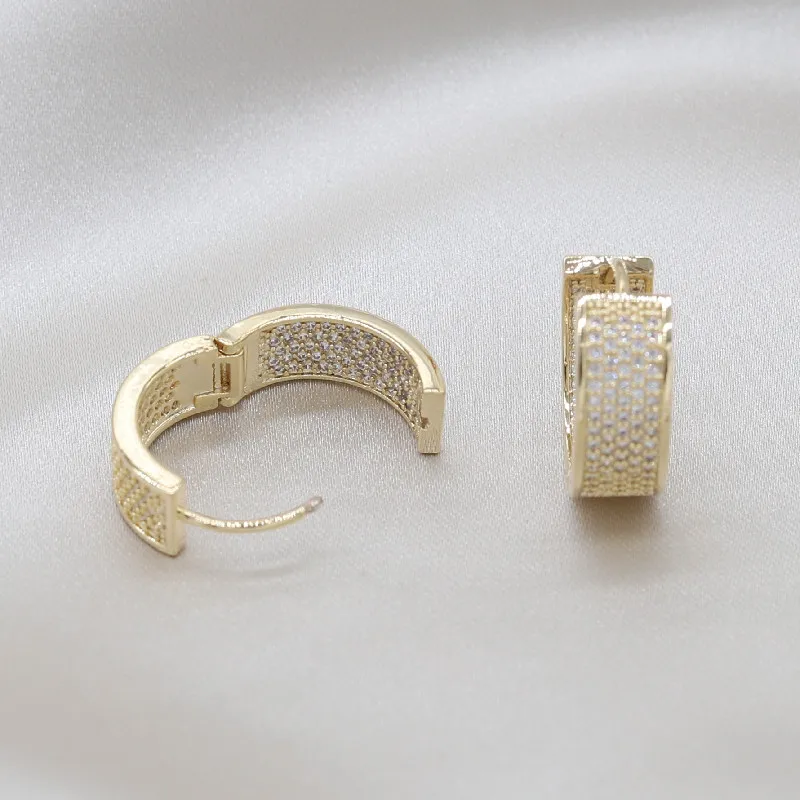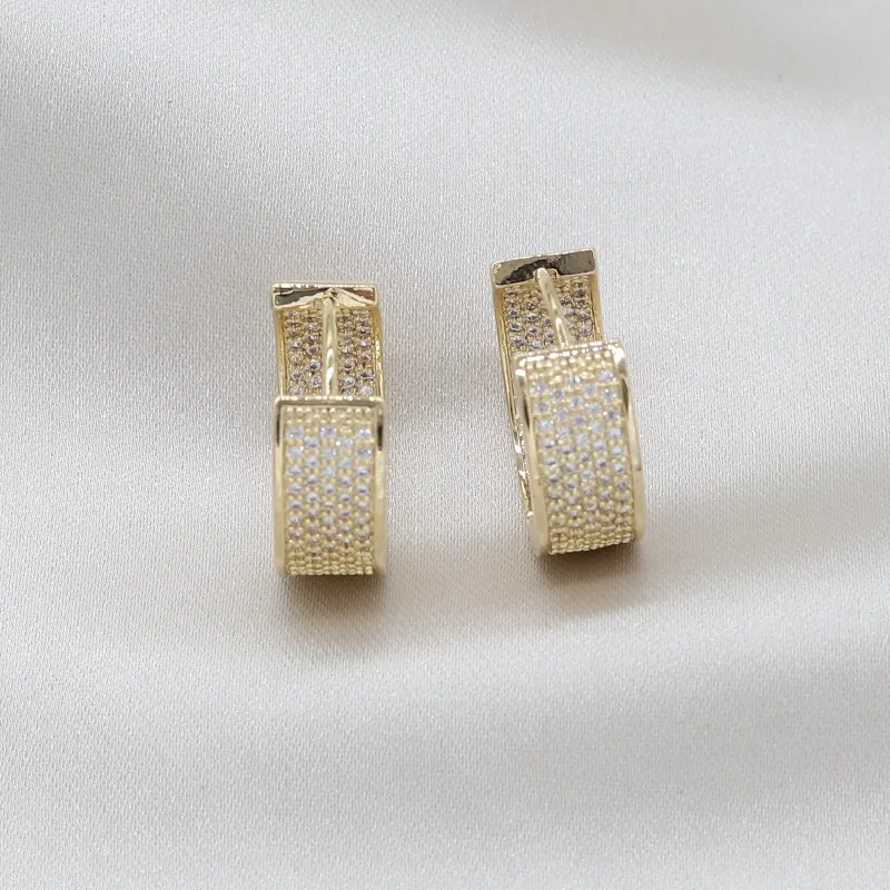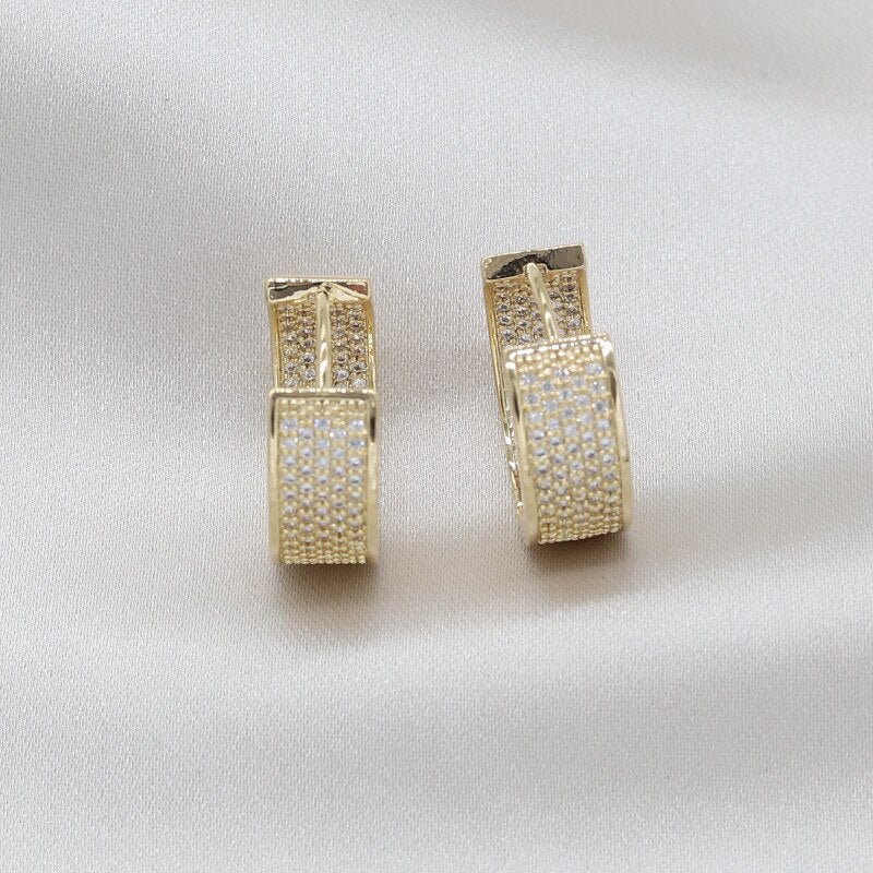 14K Real Gold plating Korea Design Jewelry Full Zircon Round Earrings Elegant Women's Evening Party earrings