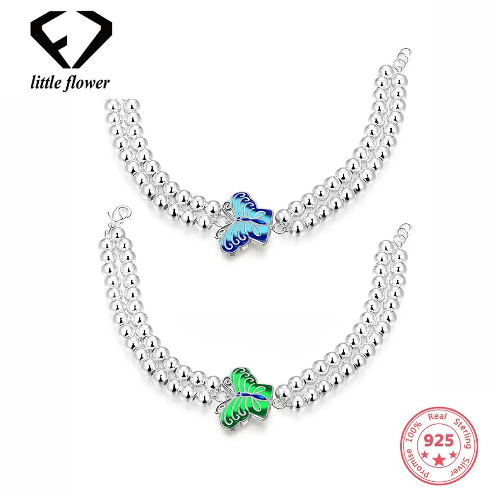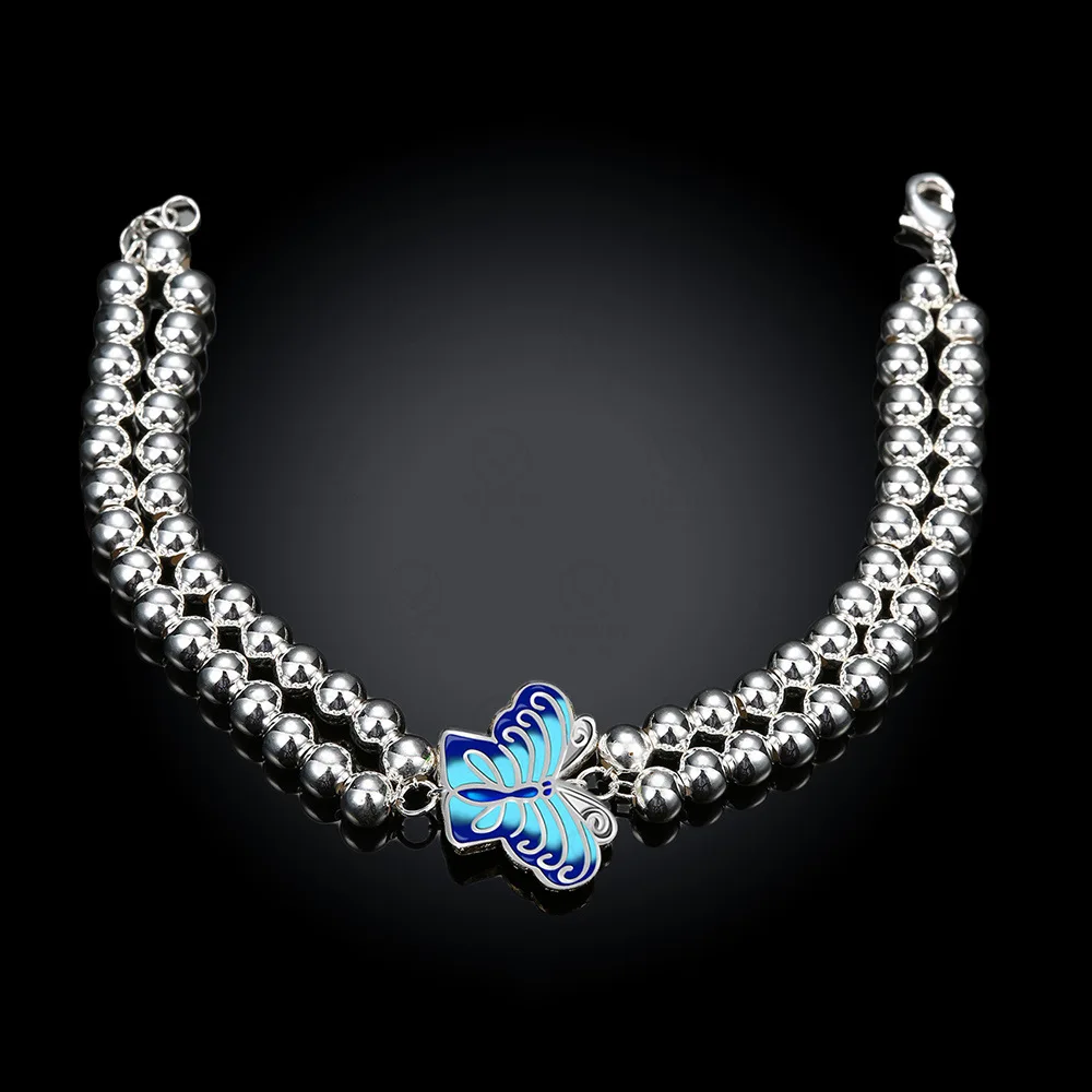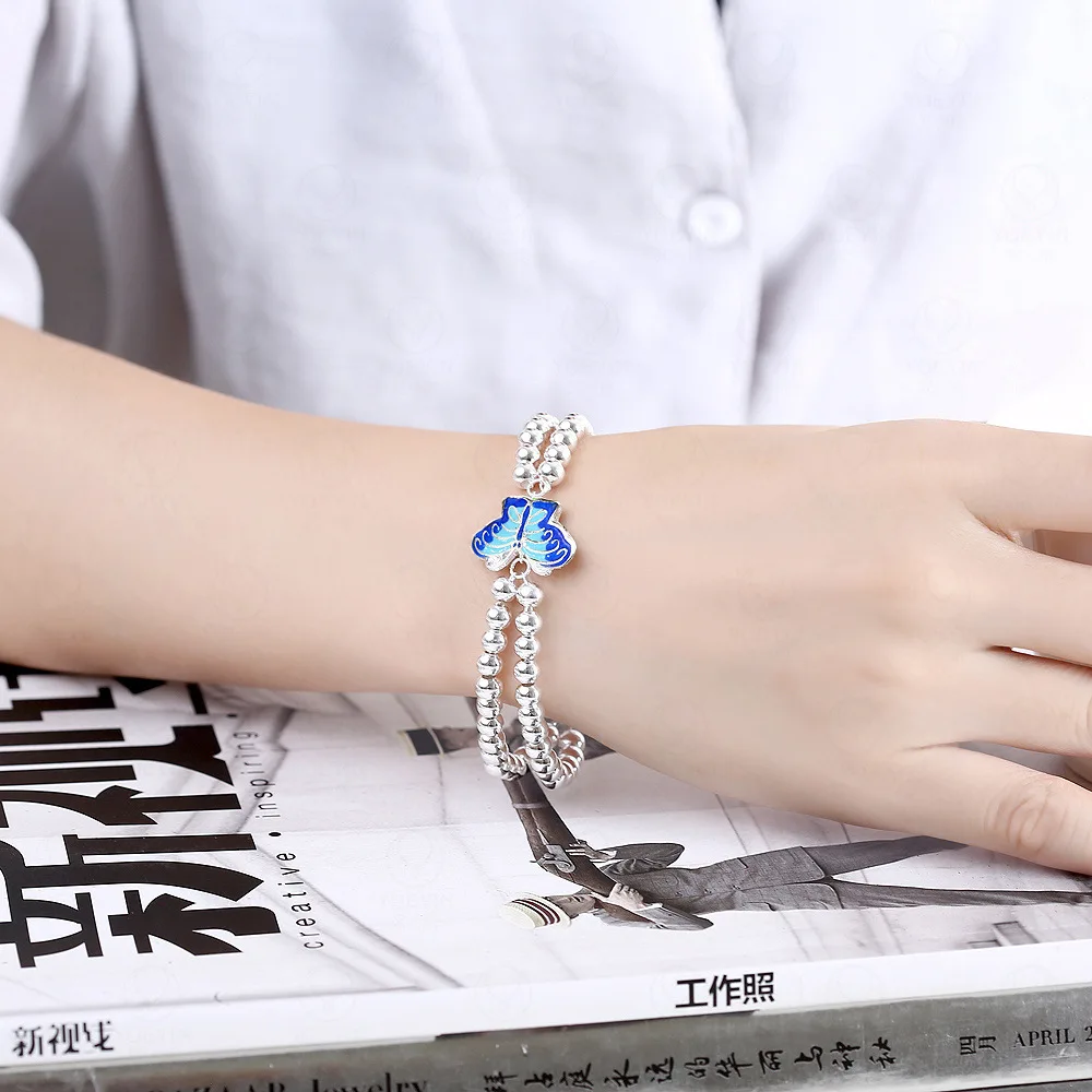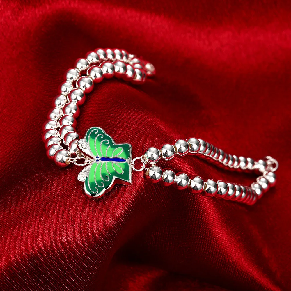 14K Rose Gold Fashion 925 Sterling Silver Bracelet for Women Alloy Creative Silver Bead Butterfly Style Fine Jewelry Blue Green