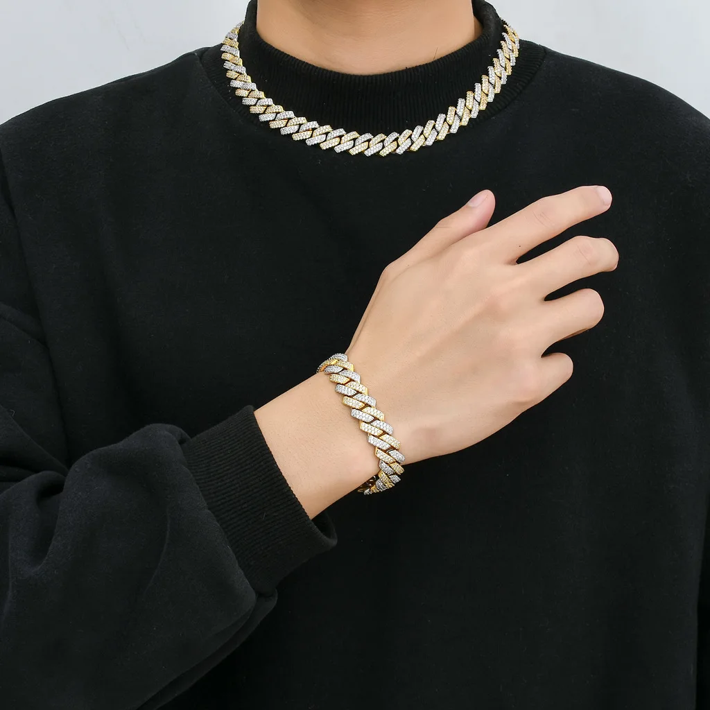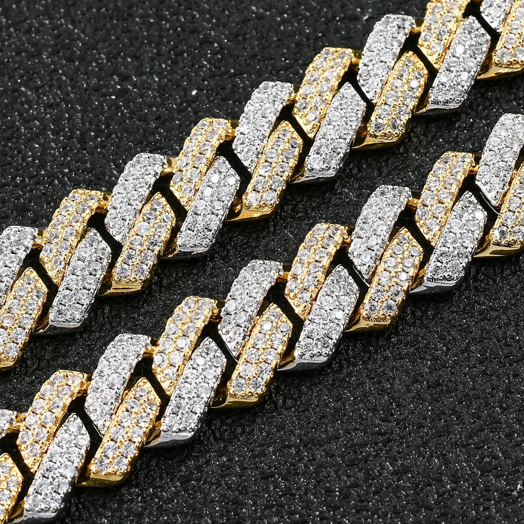 14mm Punk Iced Out Cubic Zircon Cuban Chains Necklaces Hip Hop Double Color Clavicle Choker Necklaces Pendants Collier Jewelry