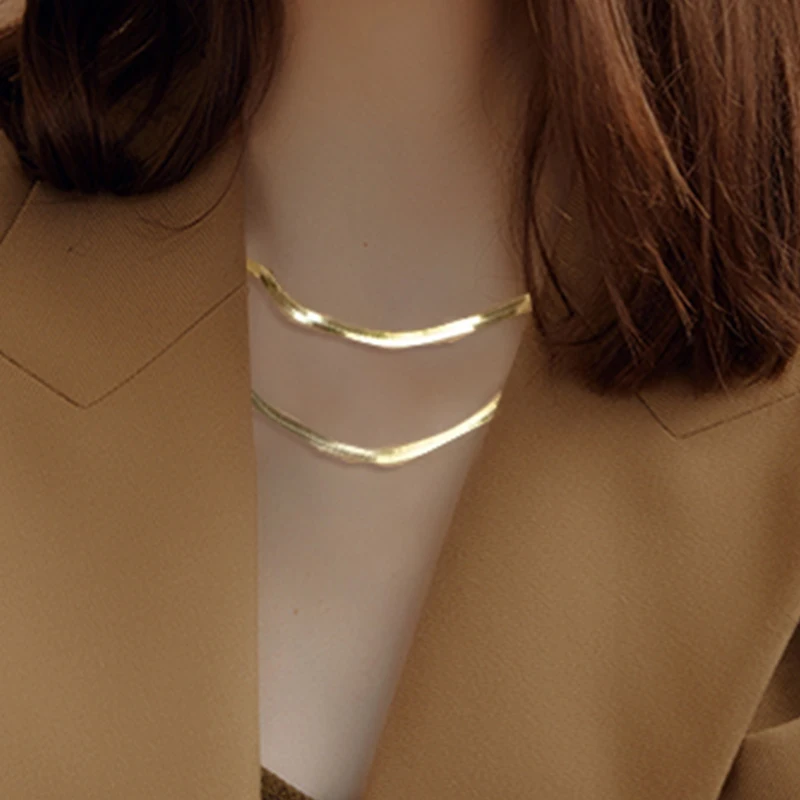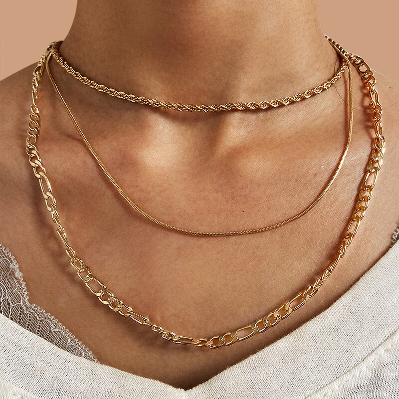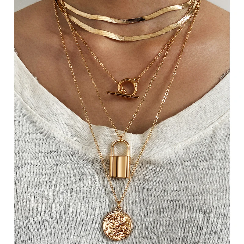 17KM Gold Multi Layered Snake Chain Link Necklace for Women Bohemian Lock Coin Choker Chain Pendant Necklaces Party Jewelry