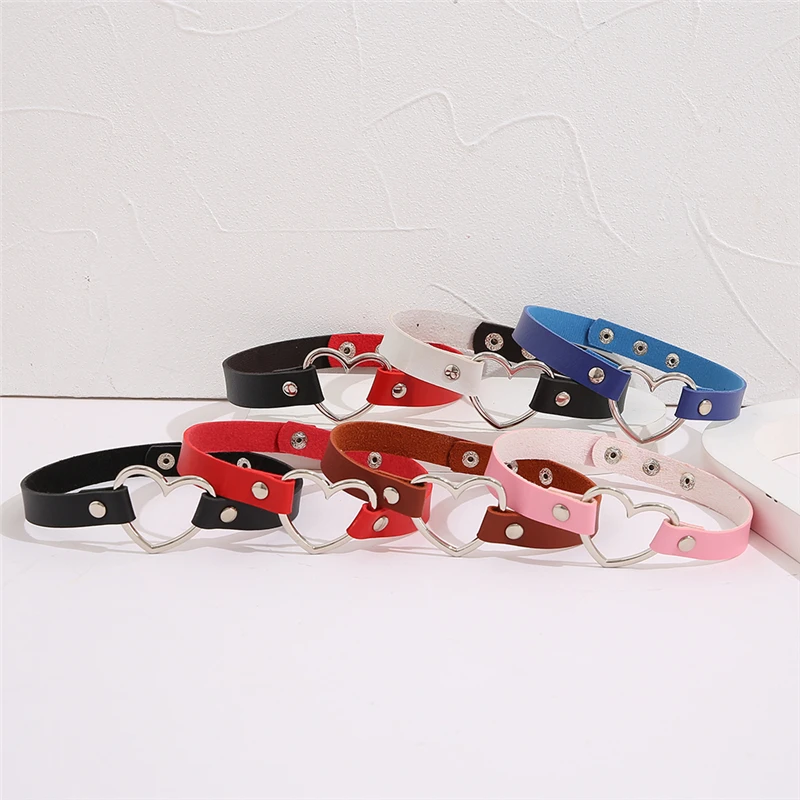 17KM Sexy Punk Gothic PU Leather Heart Choker Necklaces For Women Vintage Statement Collar Necklace Wedding Jewelry Gift