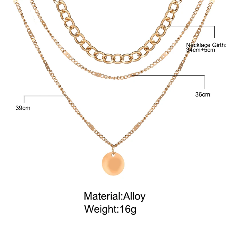 17KM Trendy Multilayer Round Pendant Necklace For Women Gold Thick Chain Choker Necklaces Party Summer Jewelry