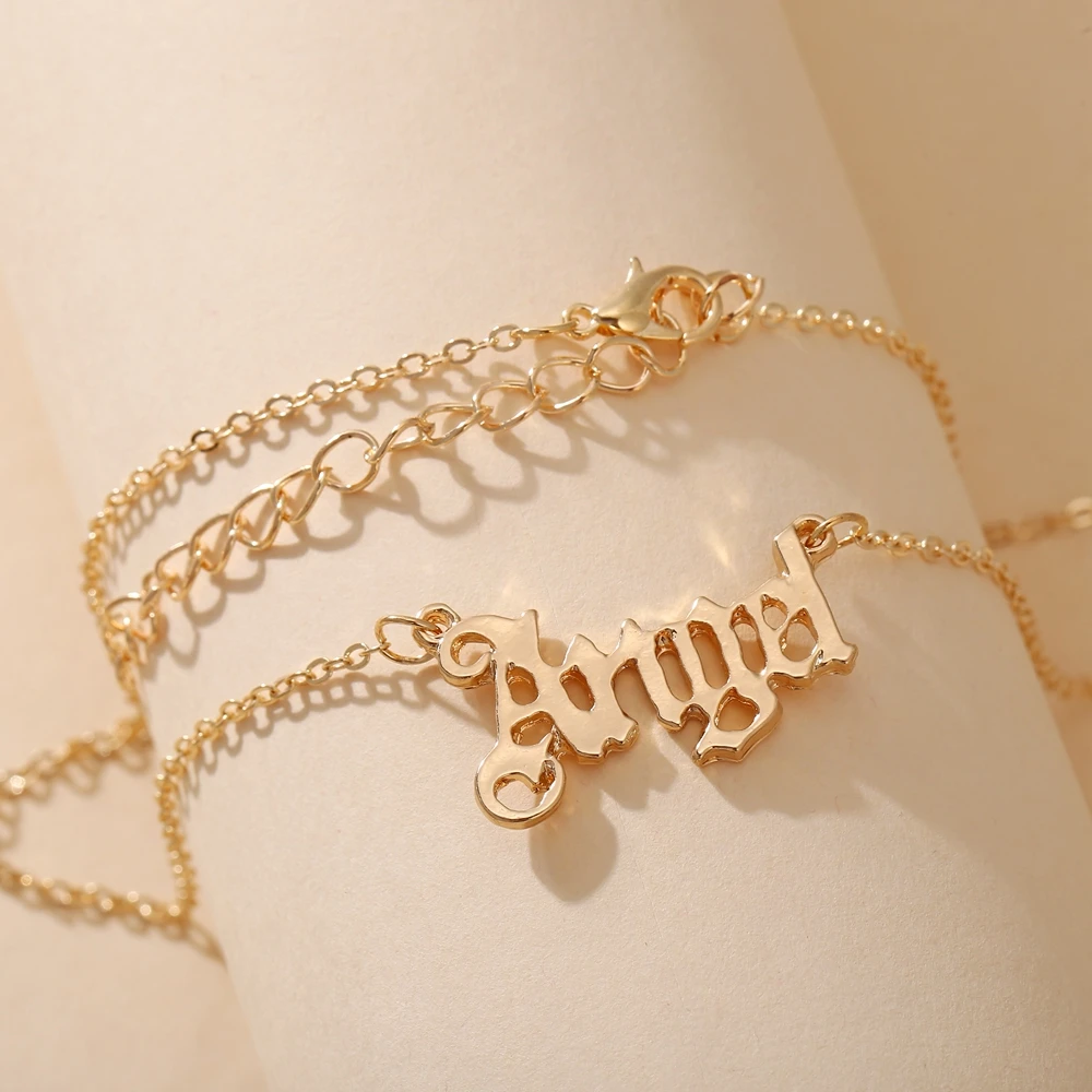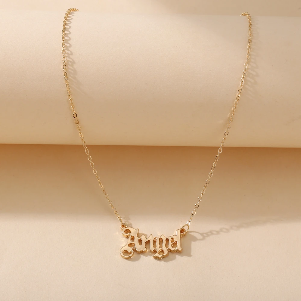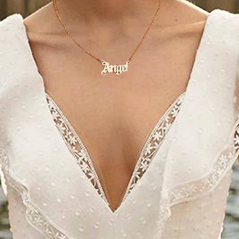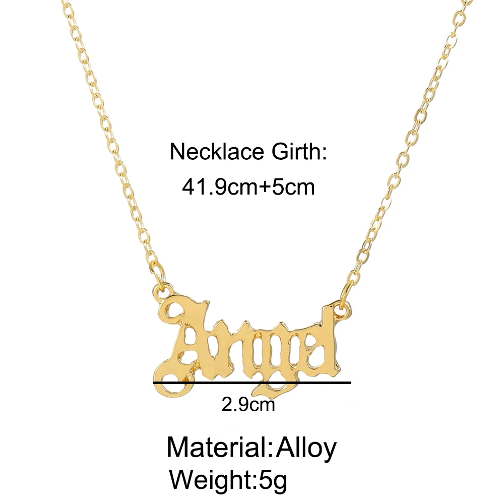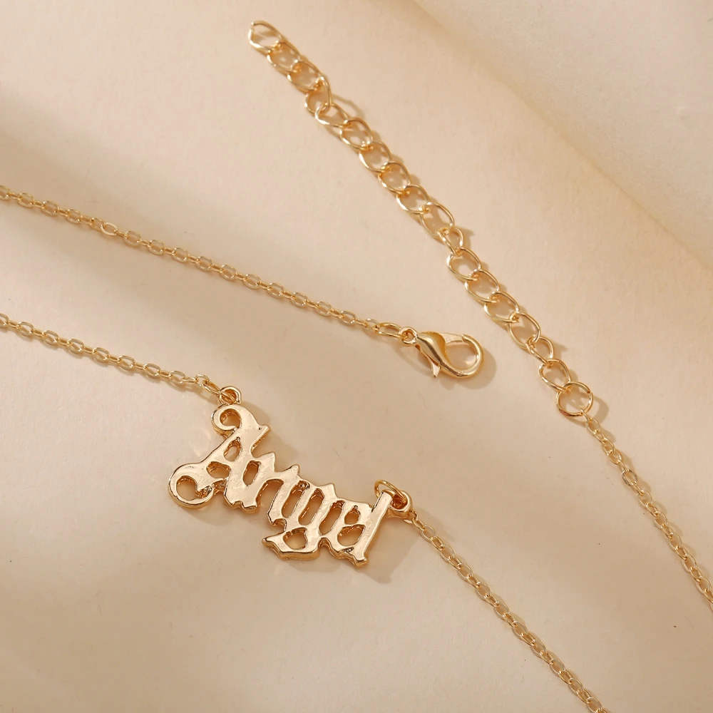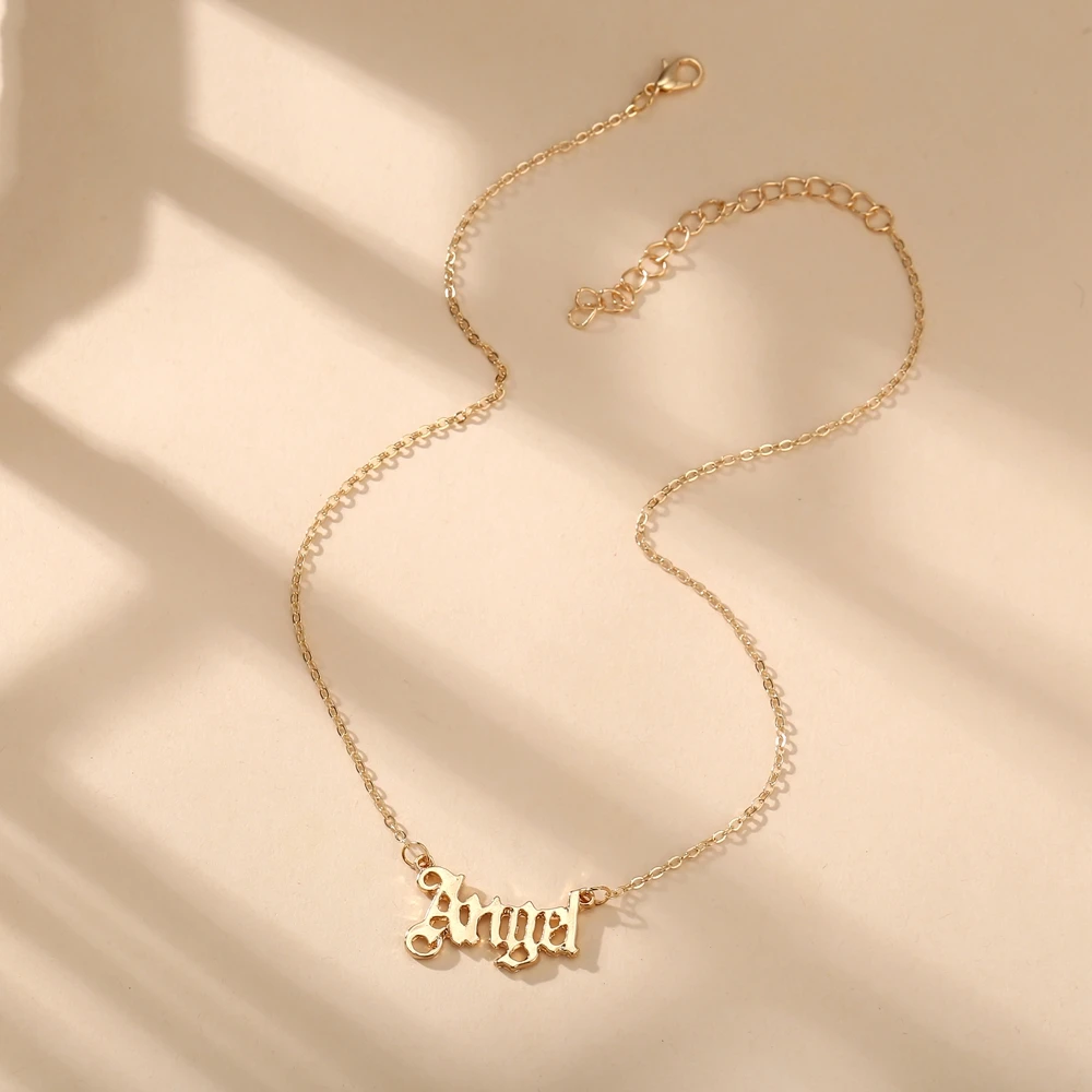 17KM Vintage Gold Angel Letter Necklace Gift for Women Old English Name Choker Necklaces 2022 Party Jewelry Mom Gift
