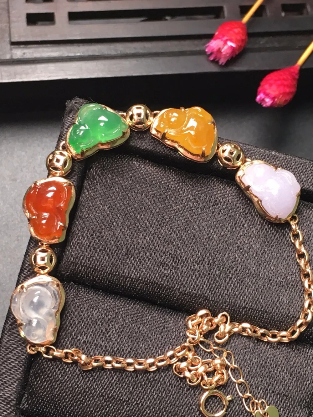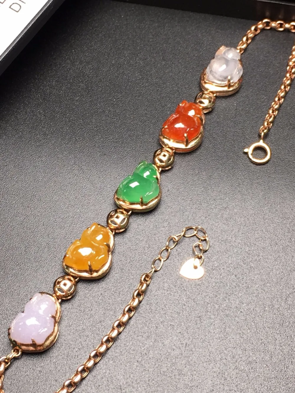 18.10.6 Real 18K Rose Gold AU750 Myanmer Origin Natural Burmes Red Jade Gemstone Female Bracelets for Women Fine Bracelets