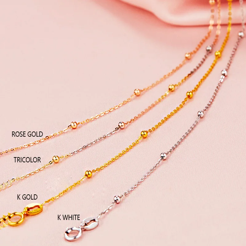 18k Pure Gold Necklace White Yellow Rose Chain Beads For Women Girl Gift Fine Jewelry New Hot Sell Upscale Top Good Nice Like
