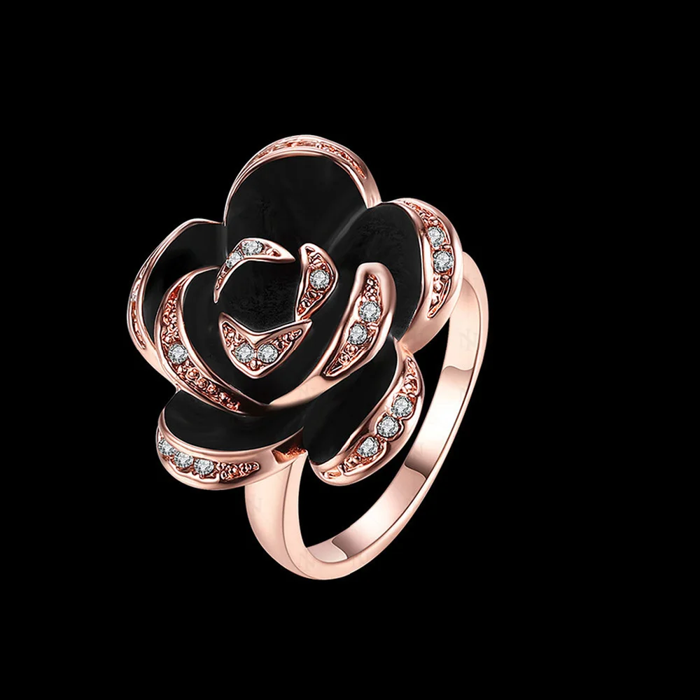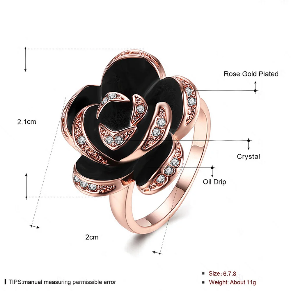 18K Rose Gold Green Alloy Oil Drip Style Simulation Rose Ring for Women European and American Trendy Fine Jewelry Geometric Type