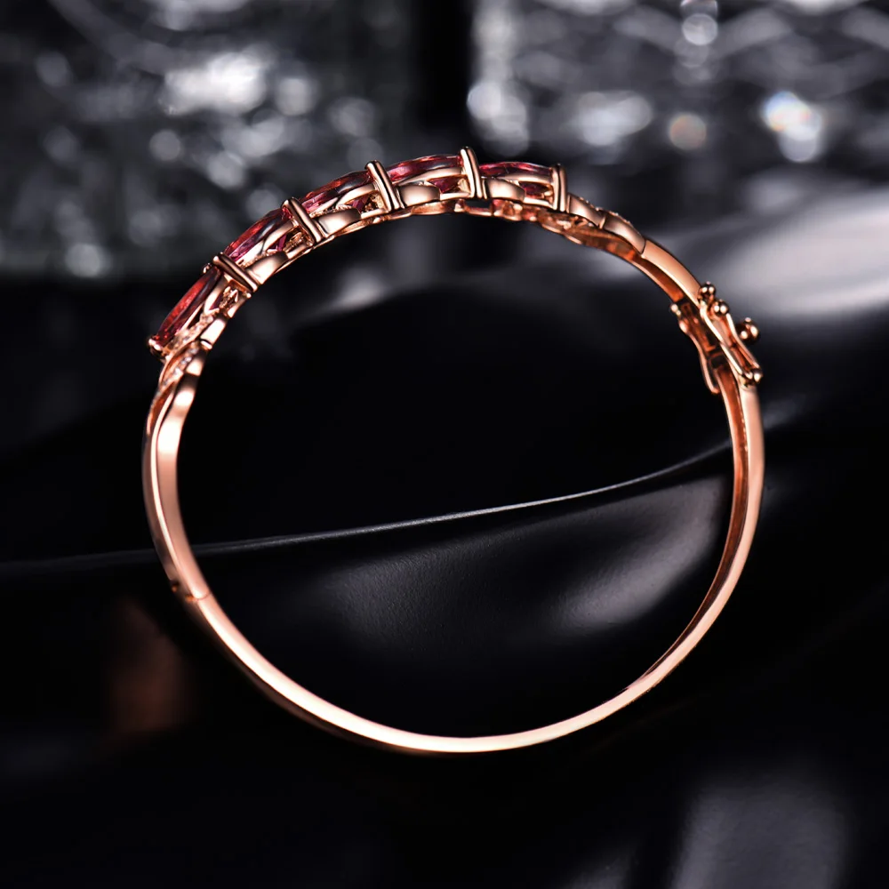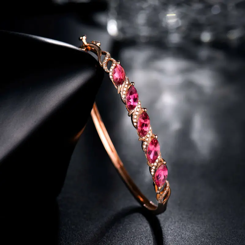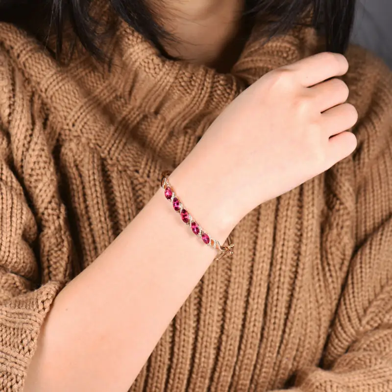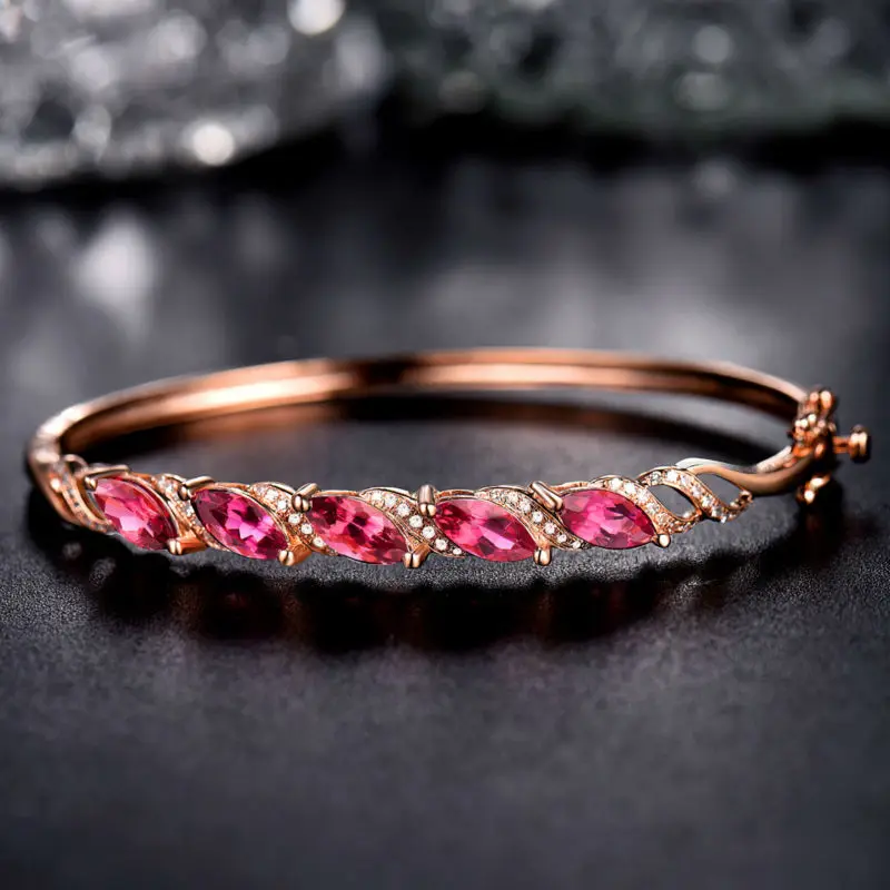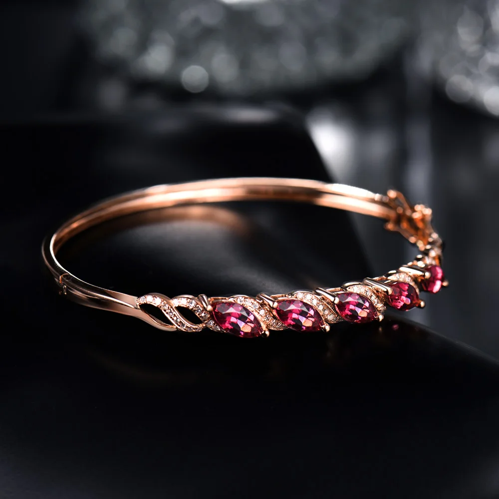 18K Rose Gold Natural Tourmaline Bracelet Marquise 4x8mm SI Clari Diamond for Daughter Jewelry Gift NA040