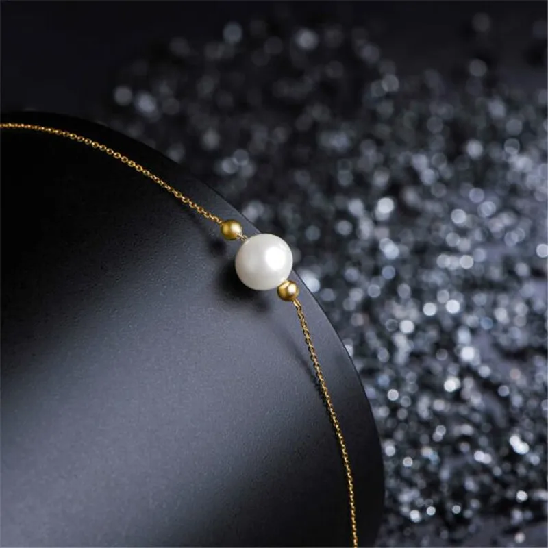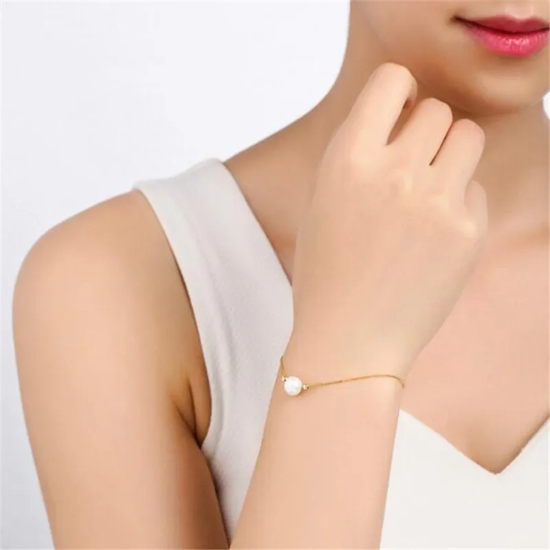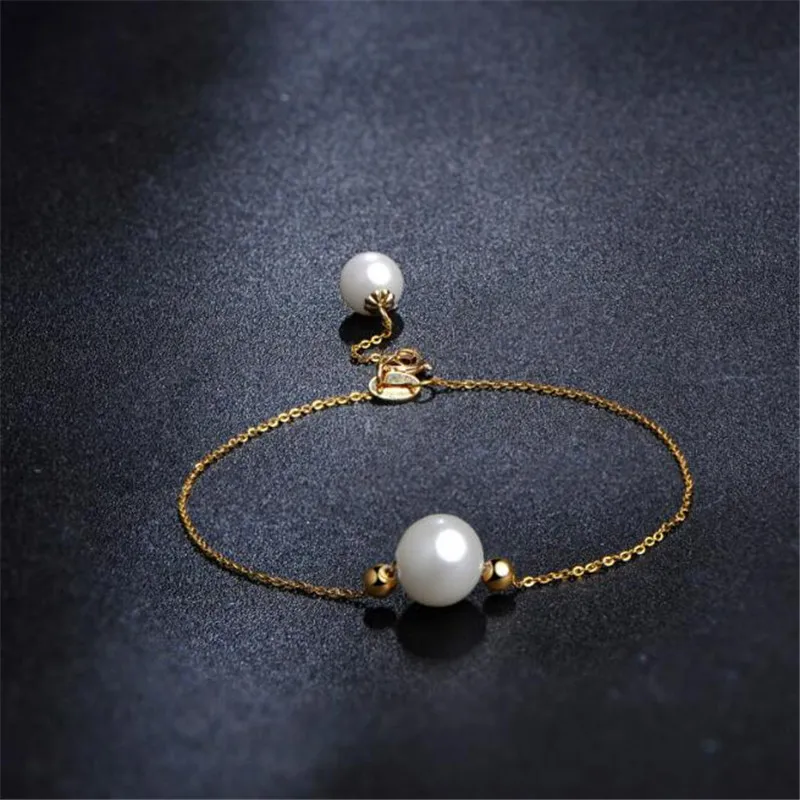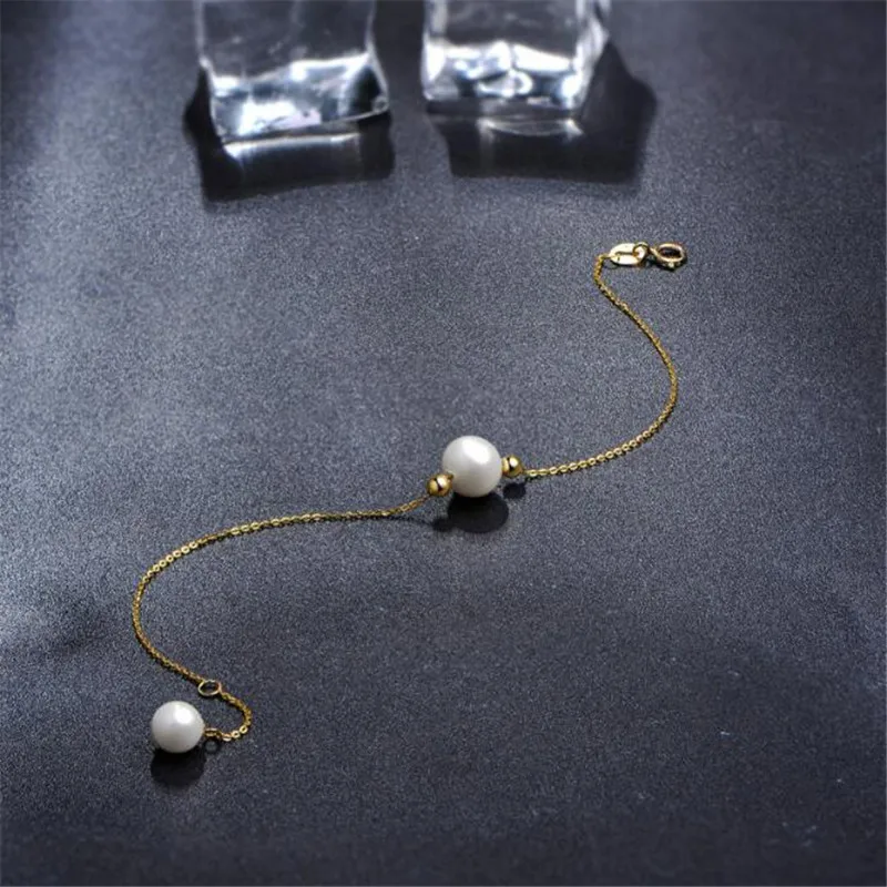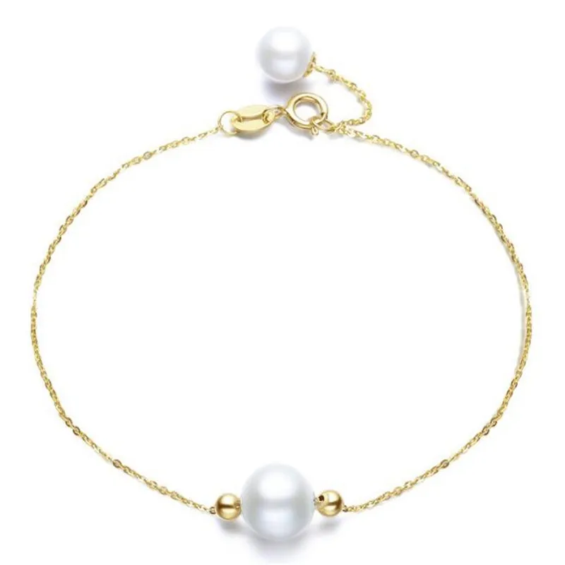 18K Yellow Gold AAAAA Natural Cultured Pearl Trendy Chain Bracelets Round White Pearl For Young Lady Birthd Gifts