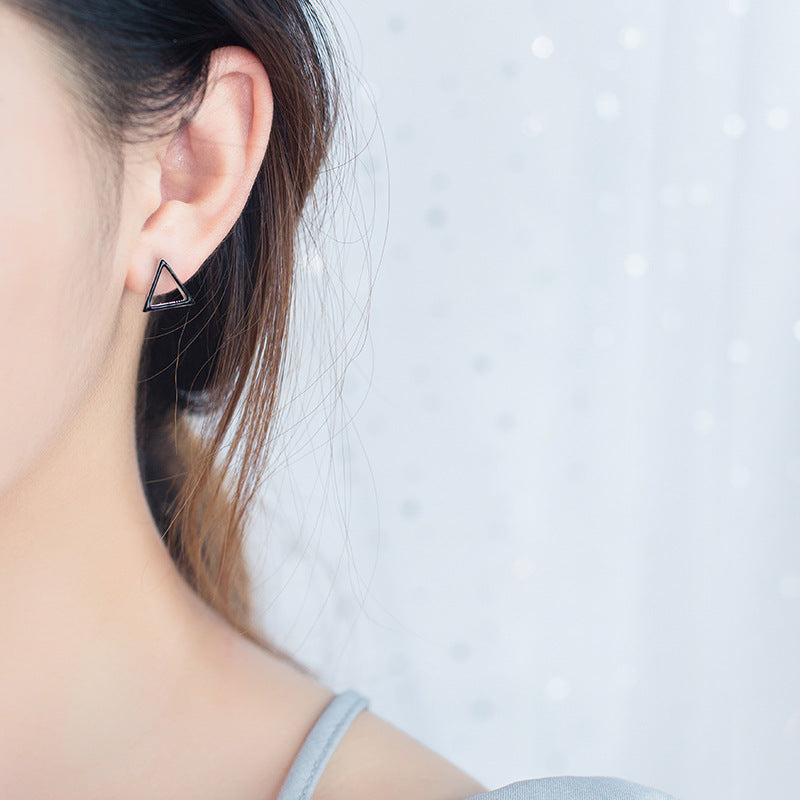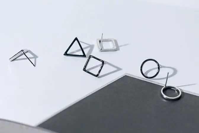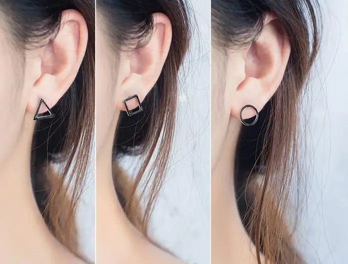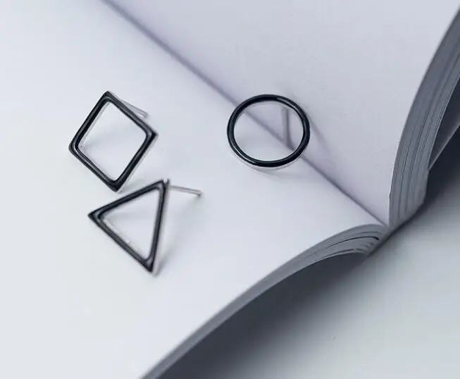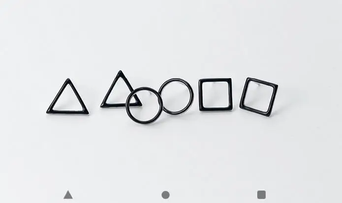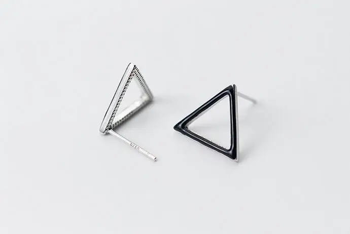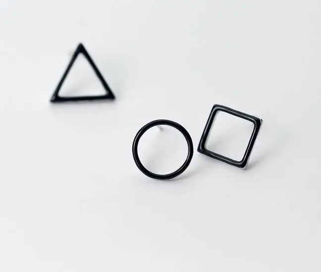1pair 100% Real. 925 Sterling Silver Fine Jewelry Black Enamel Geometric Triangle /Square /Round Circle Stud earrings GTLE1667