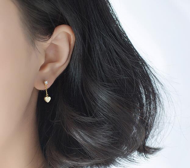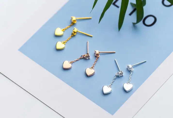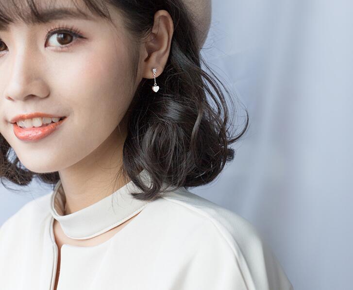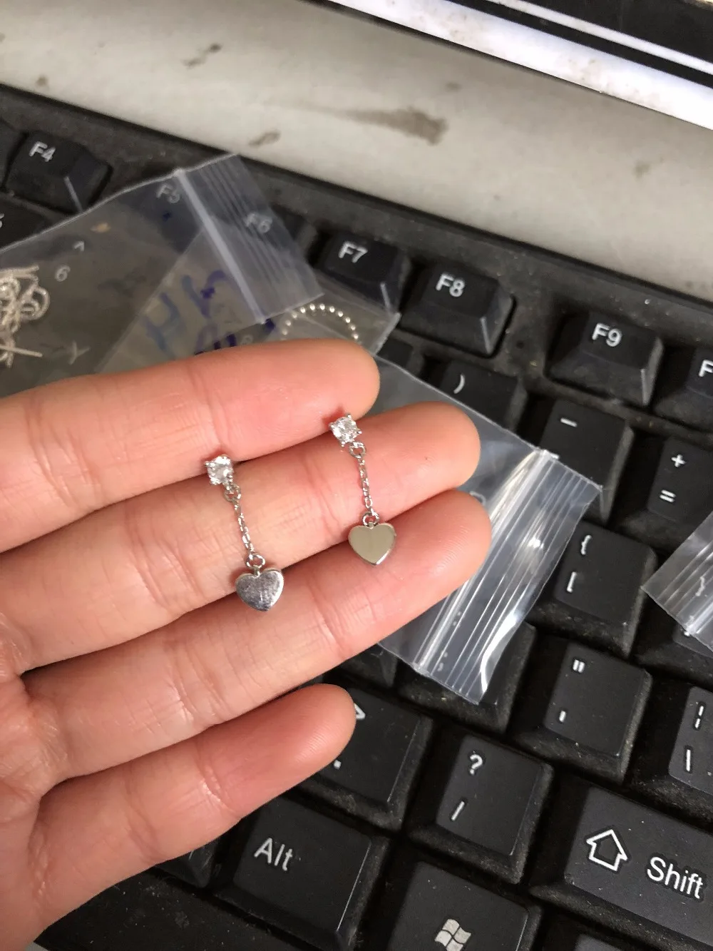 1pair 100% Real. 925 Sterling Silver Fine Jewelry Polished Heart Love & Stone Dangle Earrings Long gtle1773