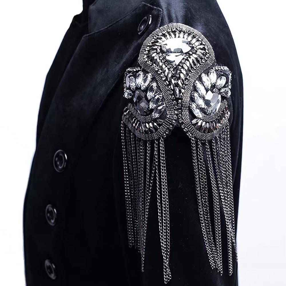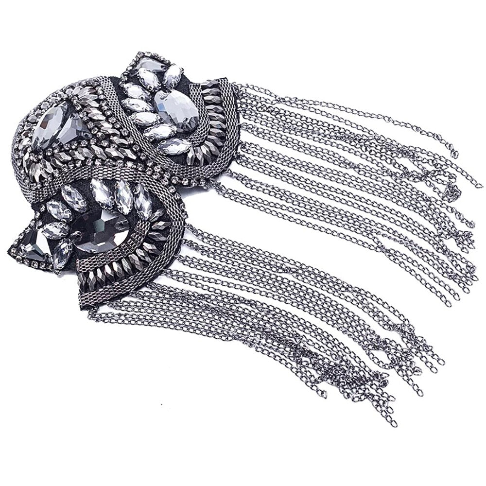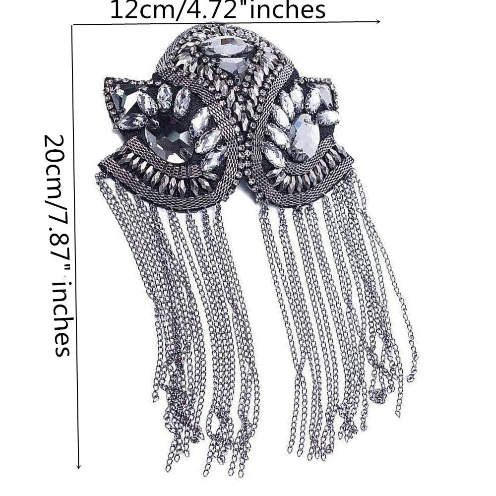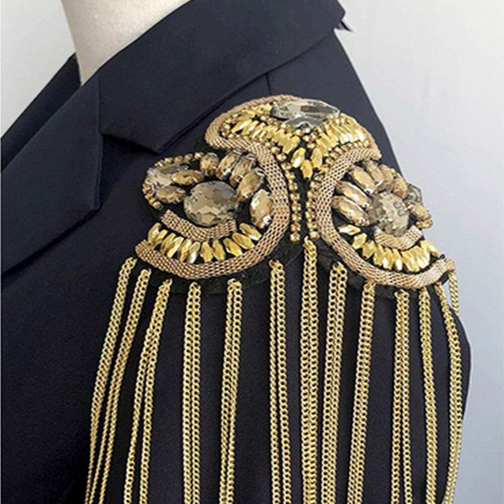 1pair Blazer Shoulder Beaded Tassel Chain Suit Epaulet Punk Fringe Tassel Rhinestones Shoulder Badge for Military Costume Party