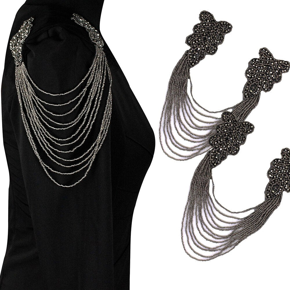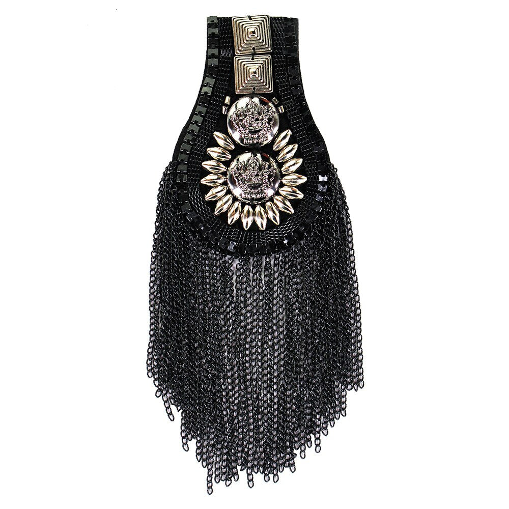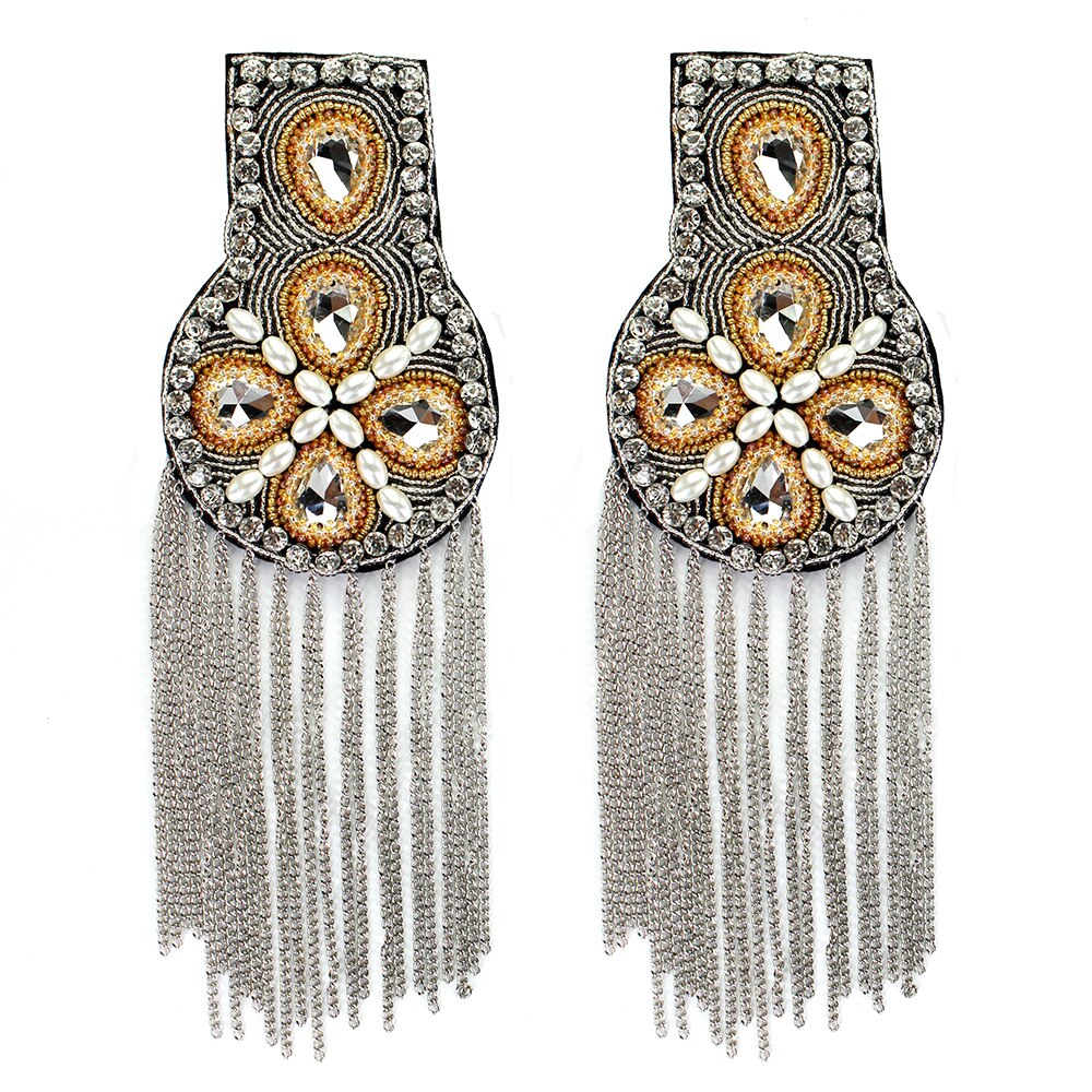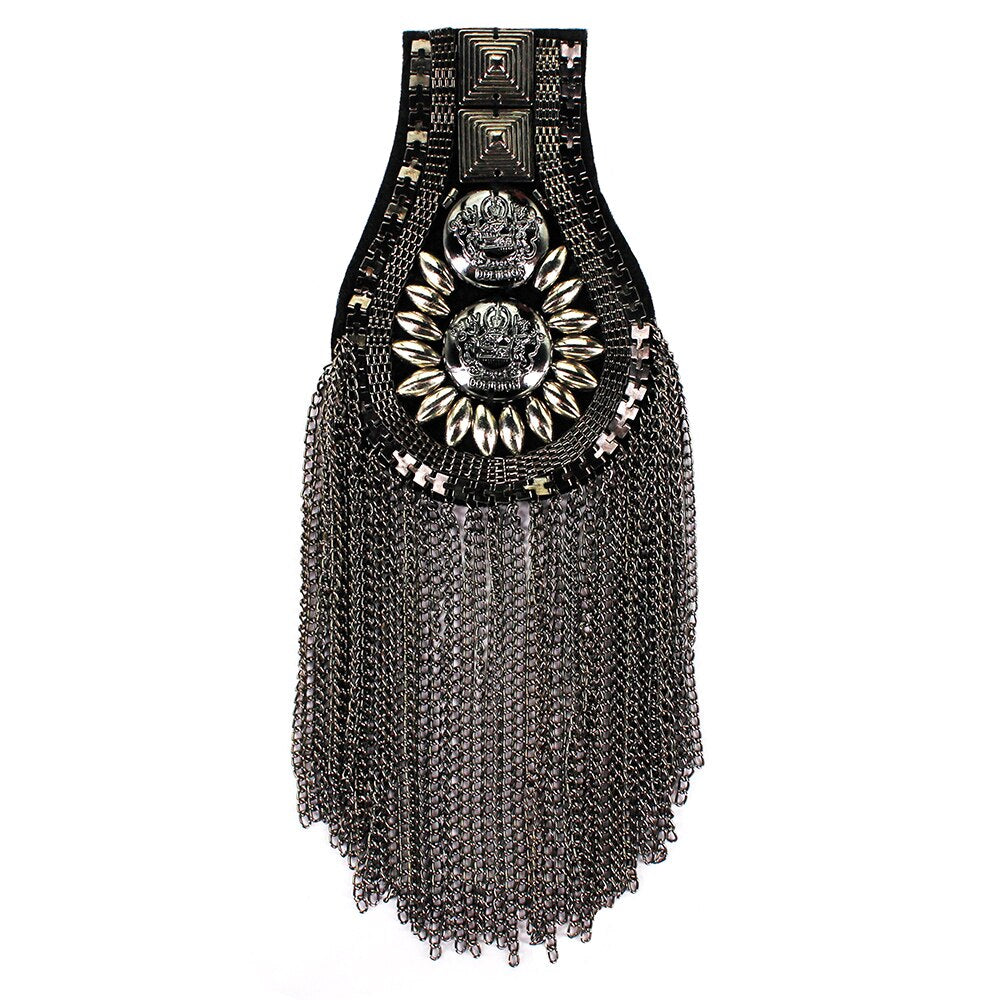 1pair Blazer Shoulder Beaded Tassel Chain Suit Epaulet Punk Fringe Tassel Rhinestones Shoulder Badge for Military Costume Party