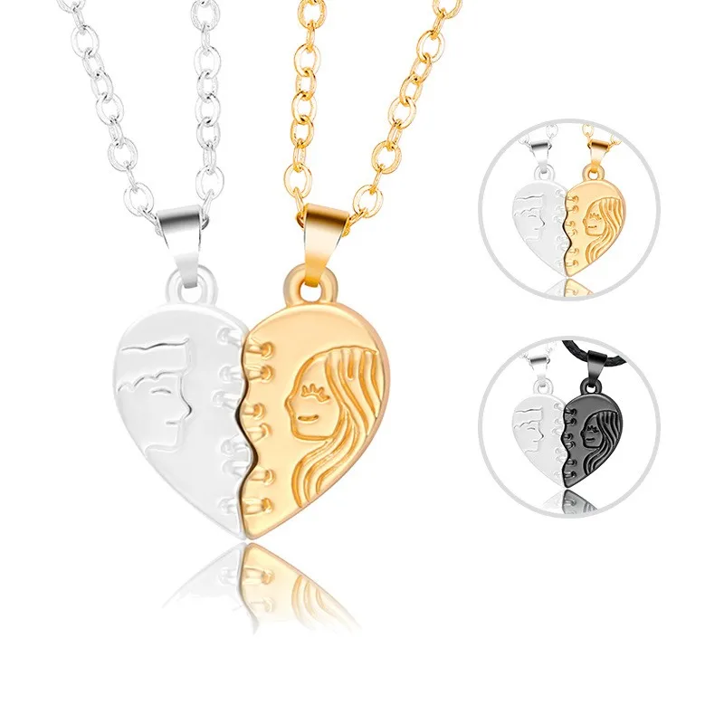 1pair Magnetic Heart Pendant Necklace Jewelry Choker Magnet Couple Necklace for Lovers Girls Boys Women Men Valentine's Day Gift