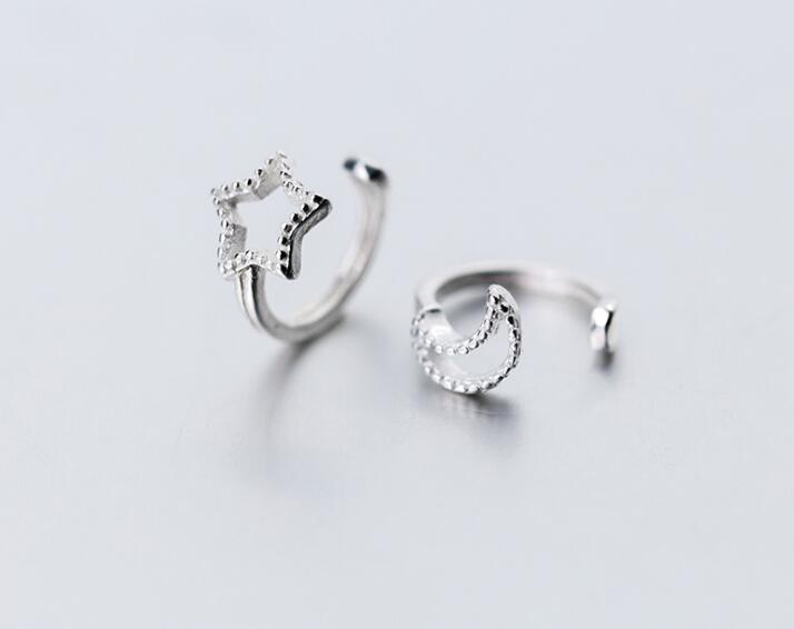 1pair SMALL (diameter 7mm) Real. 925 Sterling Silver Fine jewelry Hollow open Star /Moon Clip Earrings (No pierced) GTLE2207