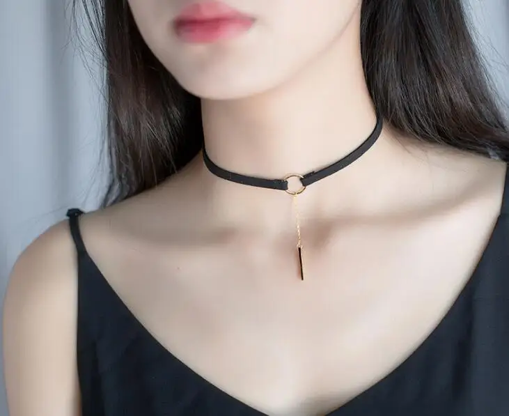 1pc 100% real 925 Sterling Silver Fine Jewelry Lucky Circle &Straight Bar Choker Short necklace Geometric GTLX1641