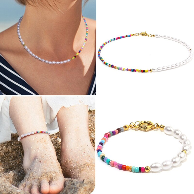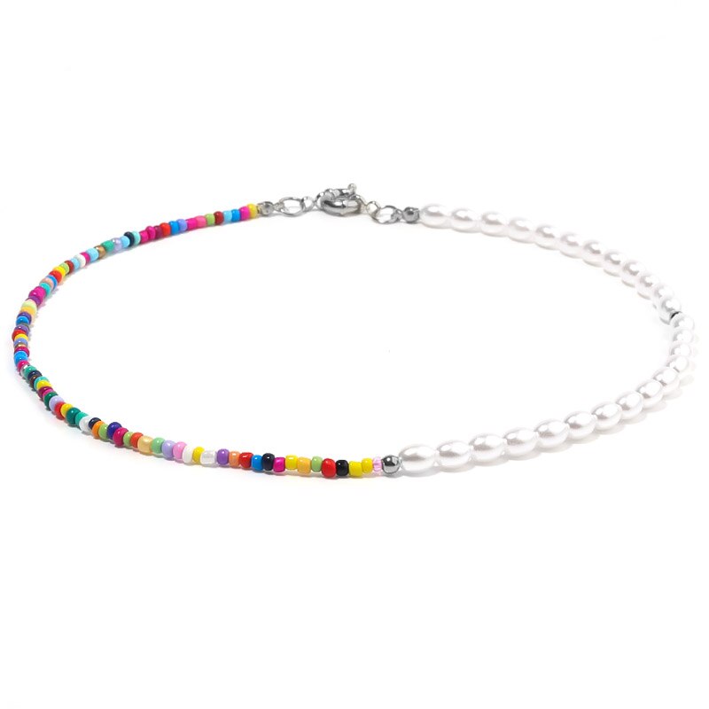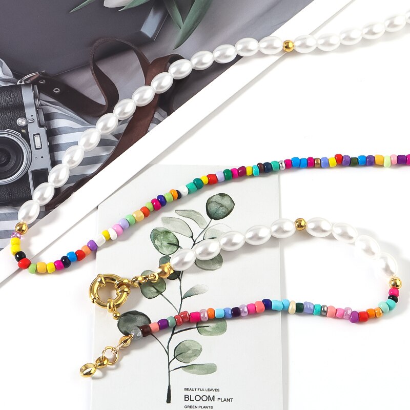 1PC Bohemia Imitation Pearls Simple Seed Beads Strand Necklace Bracelet Short Choker Necklace Jewelry Chokers Necklace Gift