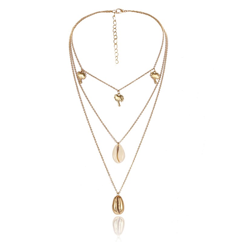 1Pc Boho Beach Tassel Multilayer Seashell Pendant Chain Choker Necklace Jewelry