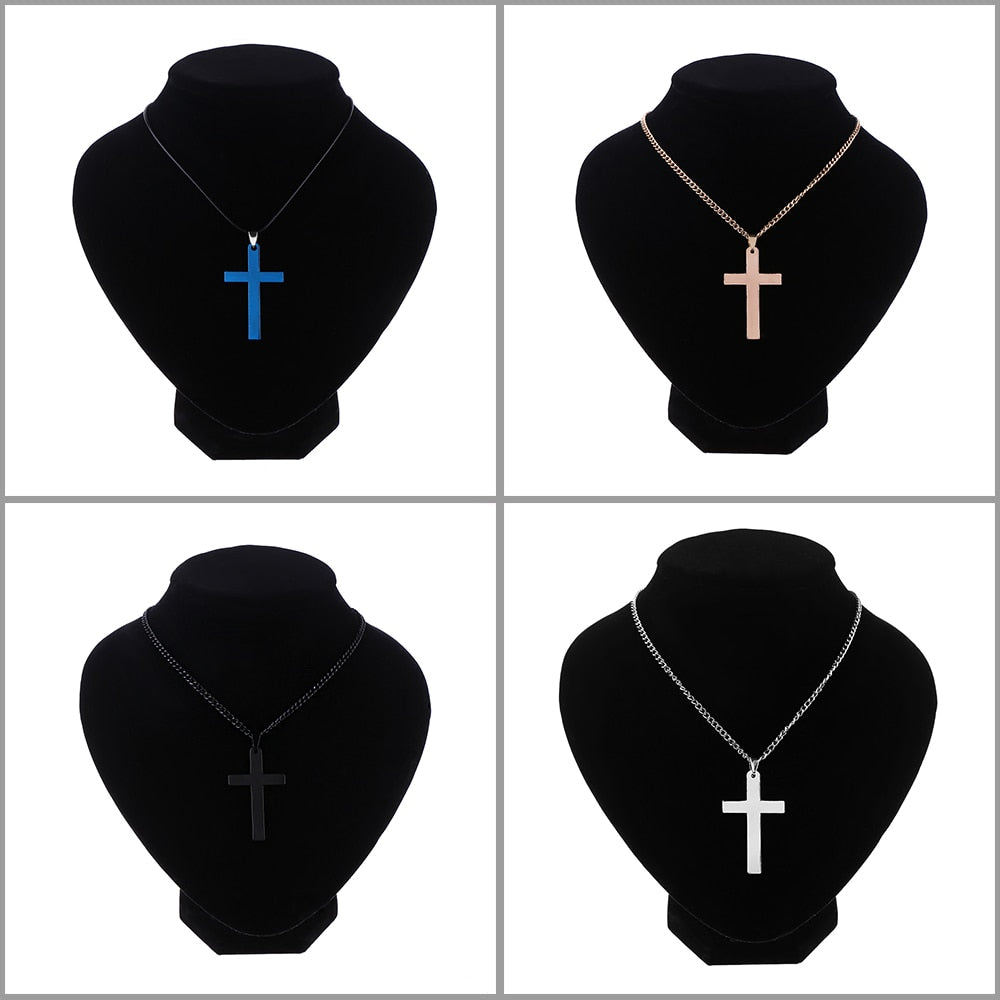 1PC Cross Pendant Gold/Silver Plated Necklace Stainless Steel Link Chain Charm Choker Statement Men Jewelry Accessories Gifts