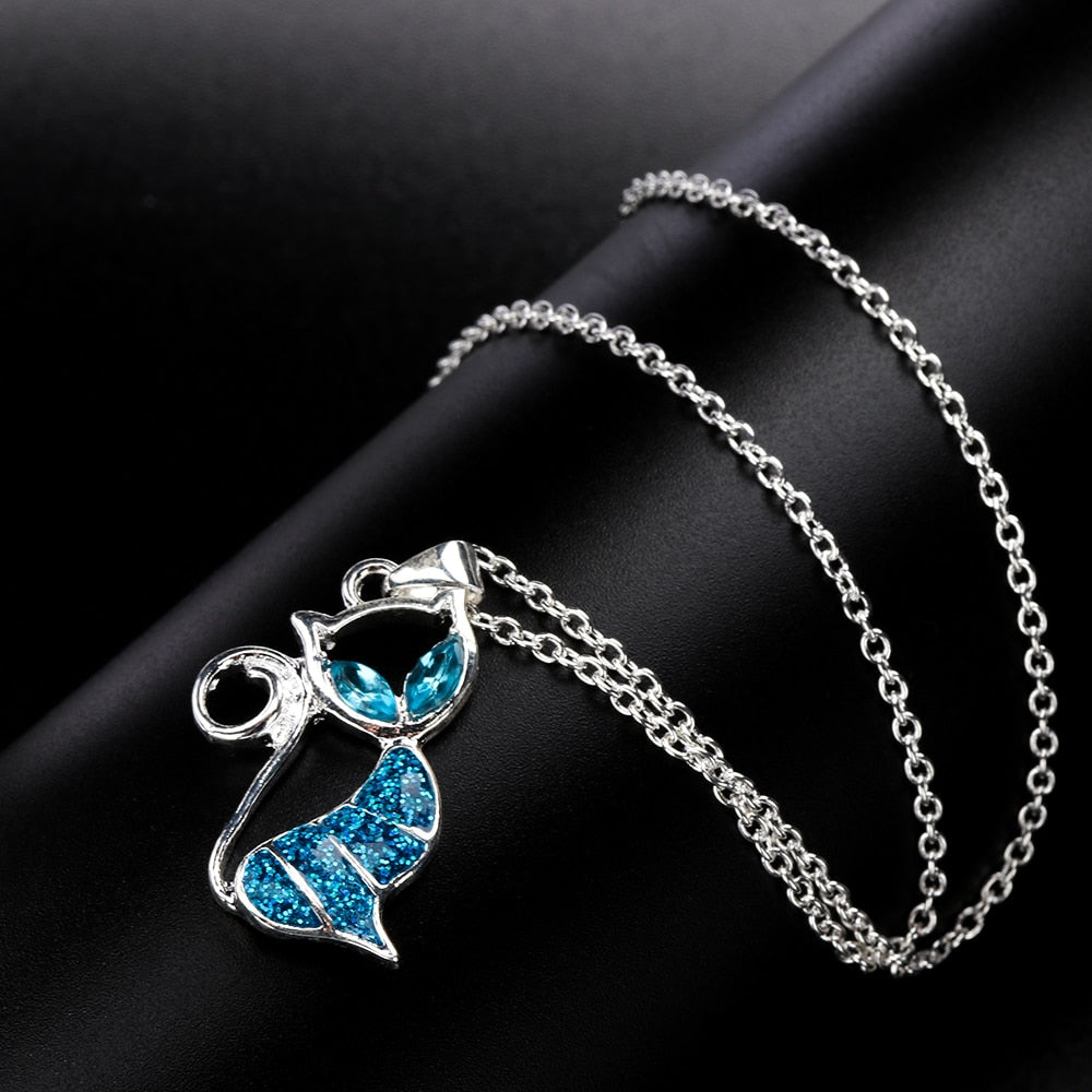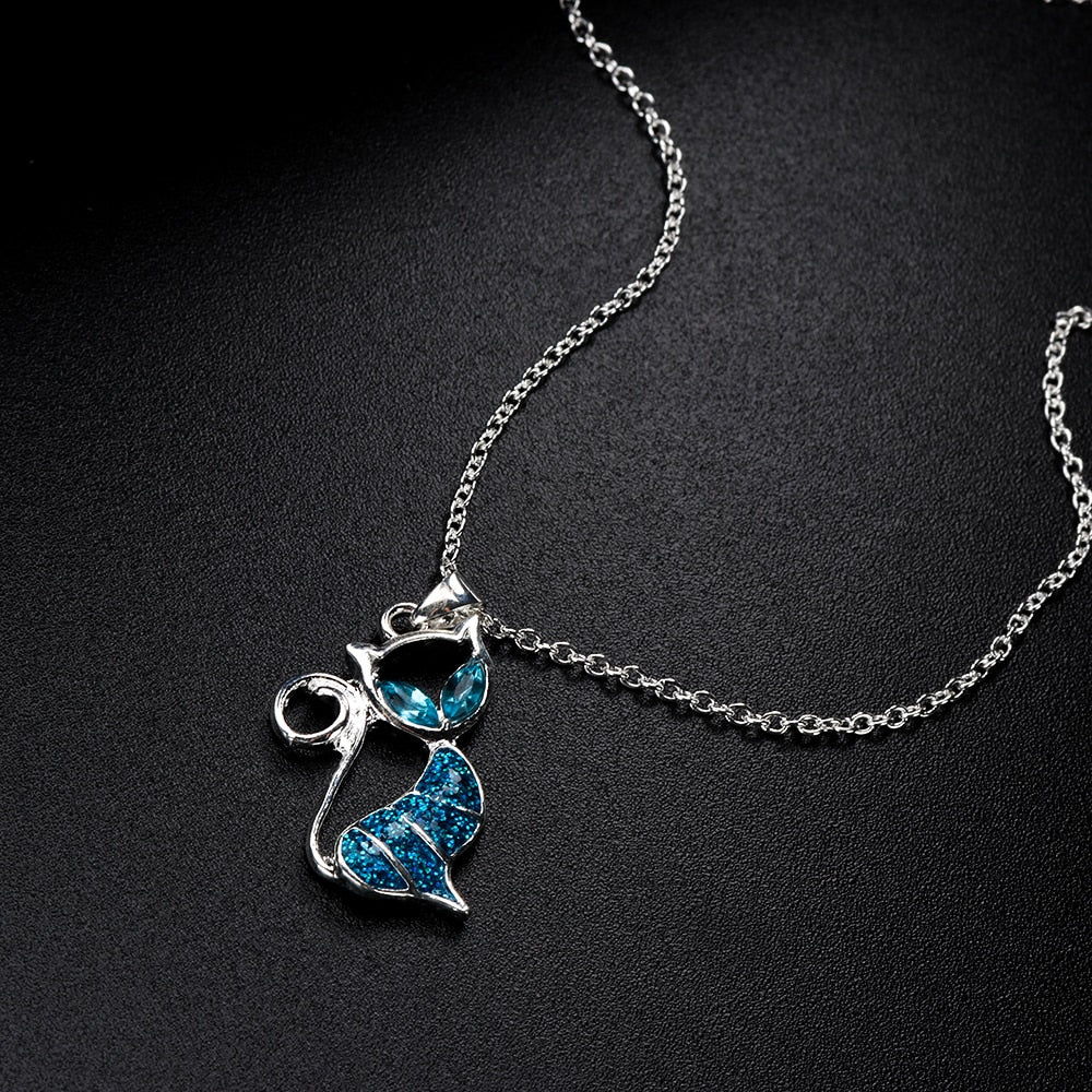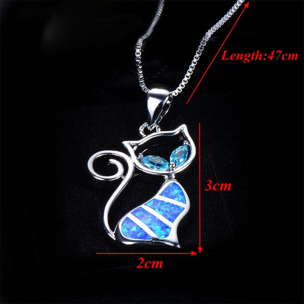 1pc Cute Cat Pendant Blue Opal Necklace Women's Animal Jewelry Trendy Jewelry Gift for Women