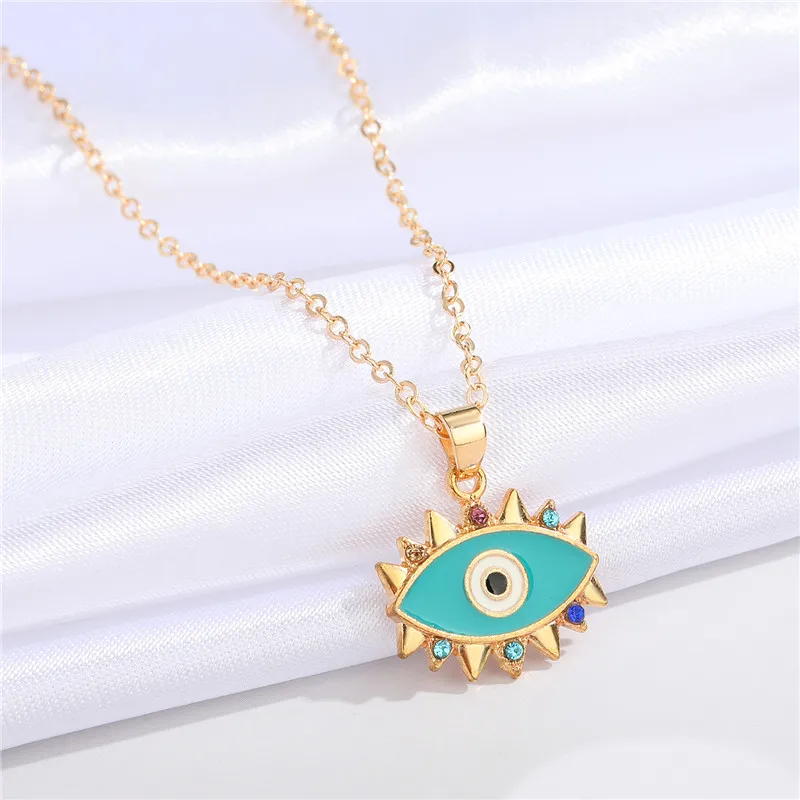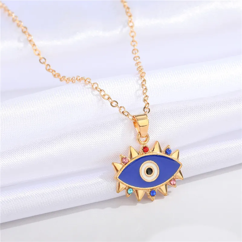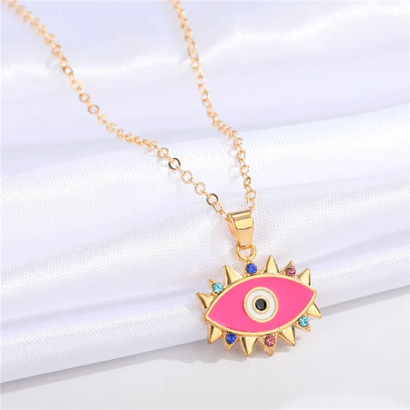 1PC Ethnic Colorful Evil Eye Necklace For Women Bohemia Enamel Rainbow Zircon Eyelashes Pendant Necklace Chain Jewelry N222