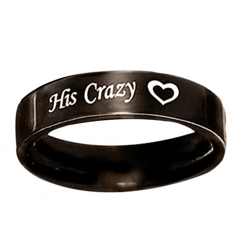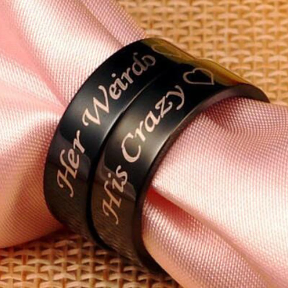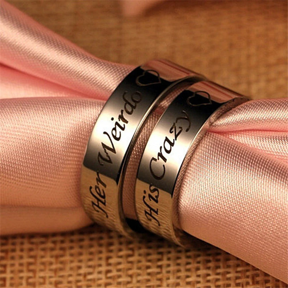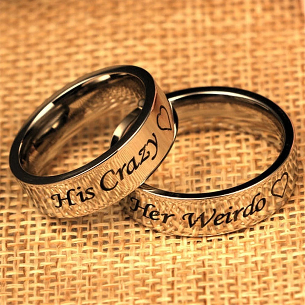 1Pc His Crazy Her Weirdo Wedding Engagement Letter Print Couple Ring Jewelry