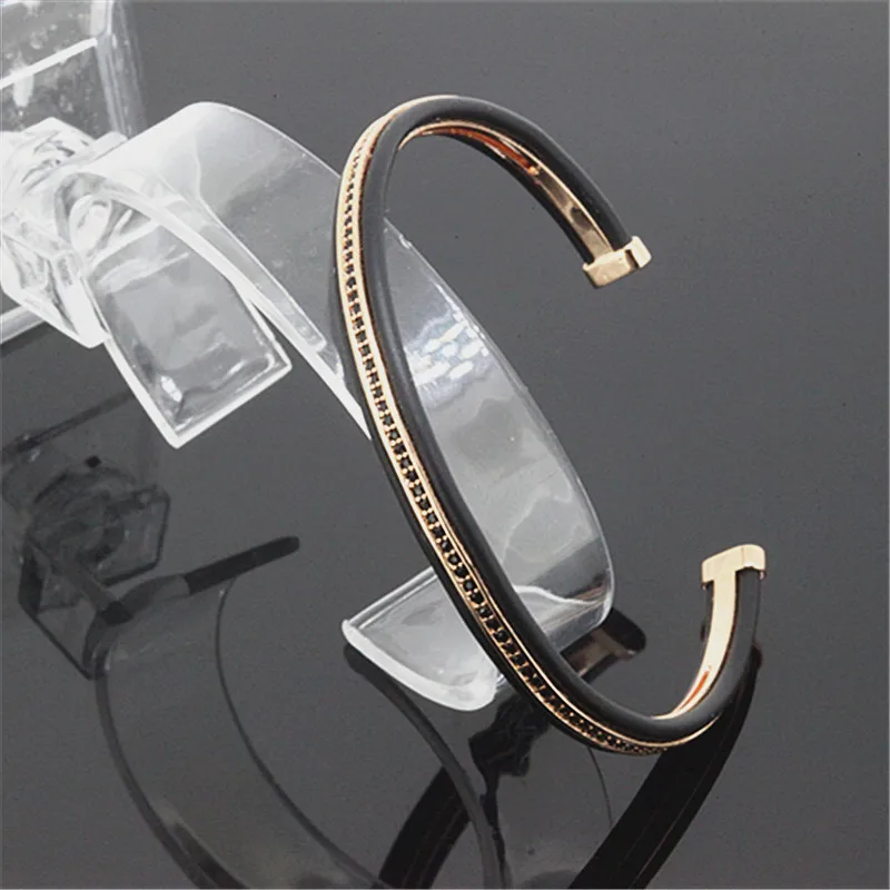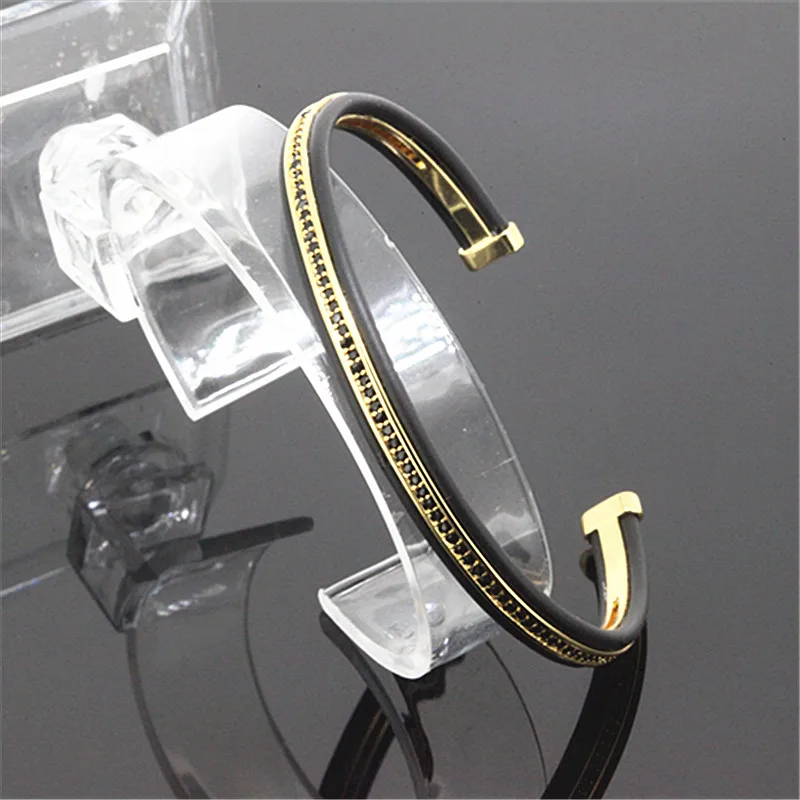 Brand Men Anil Arjanda Bangles Micro Pave Black CZ & Charm Cuff Bangle Open Bangle Bracelets for Men Women Jewelry