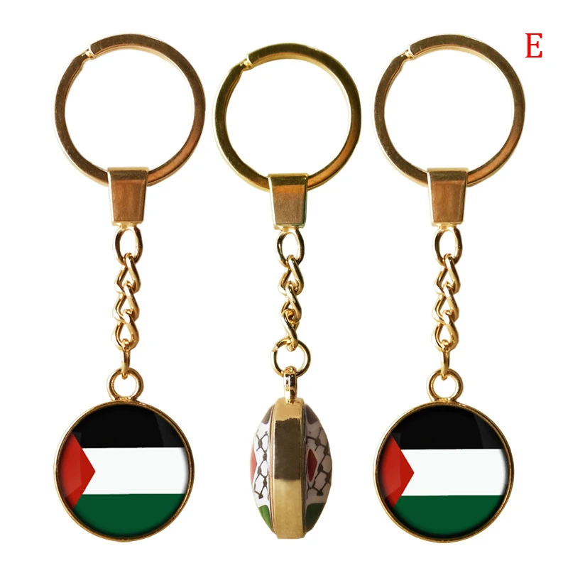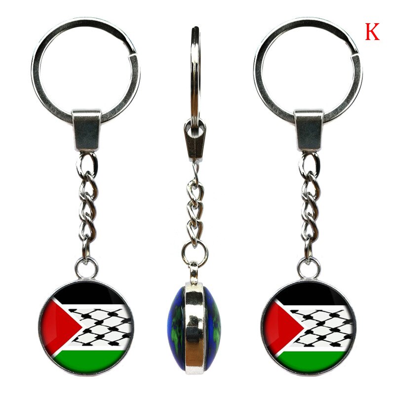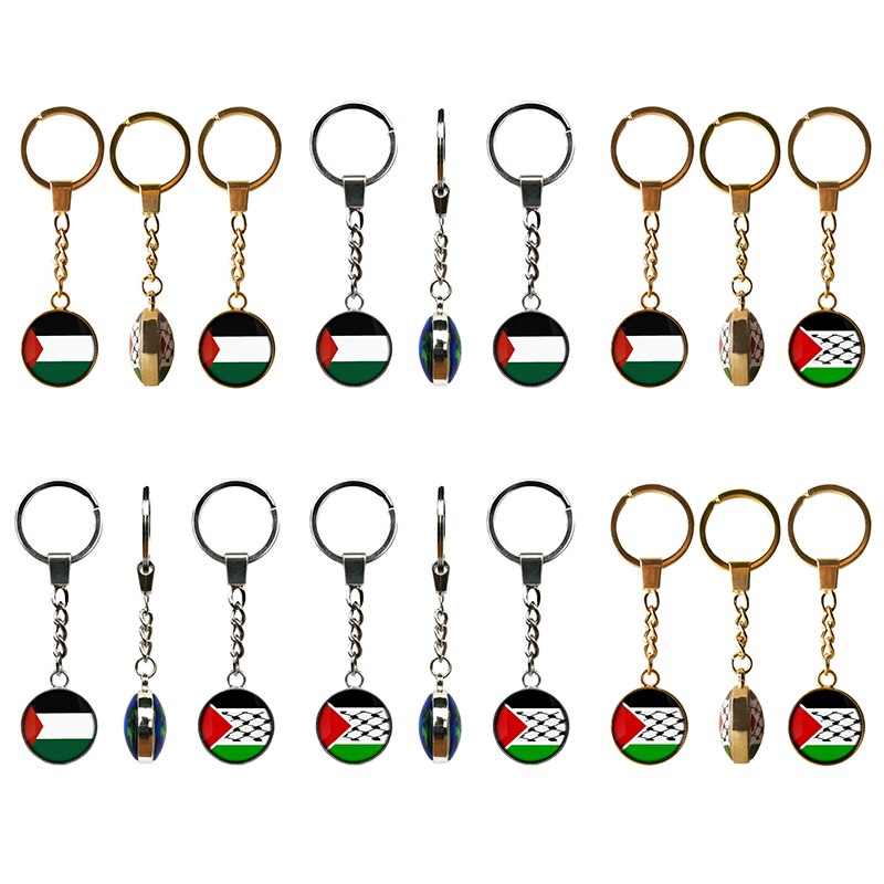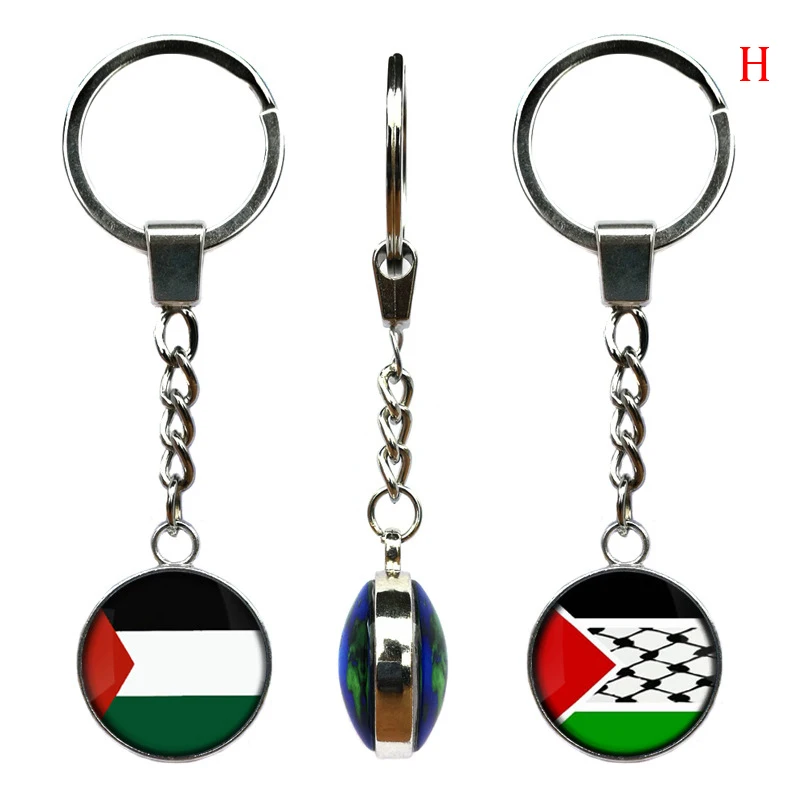 1PC Round Palestine Flag Map Pendant Necklace Key Chain Jewelry Keychain Souvenirs Gifts For Men Women New