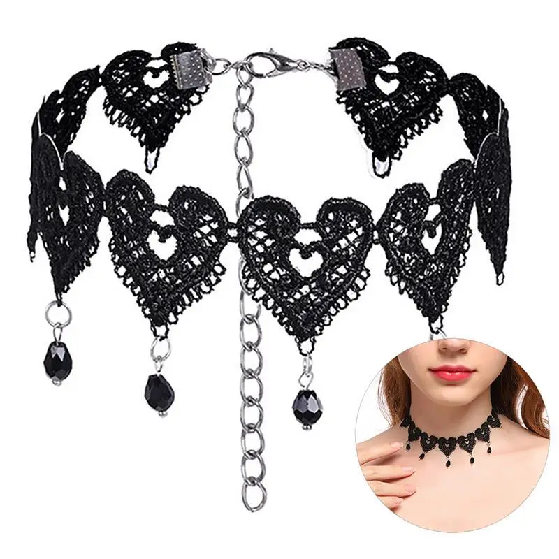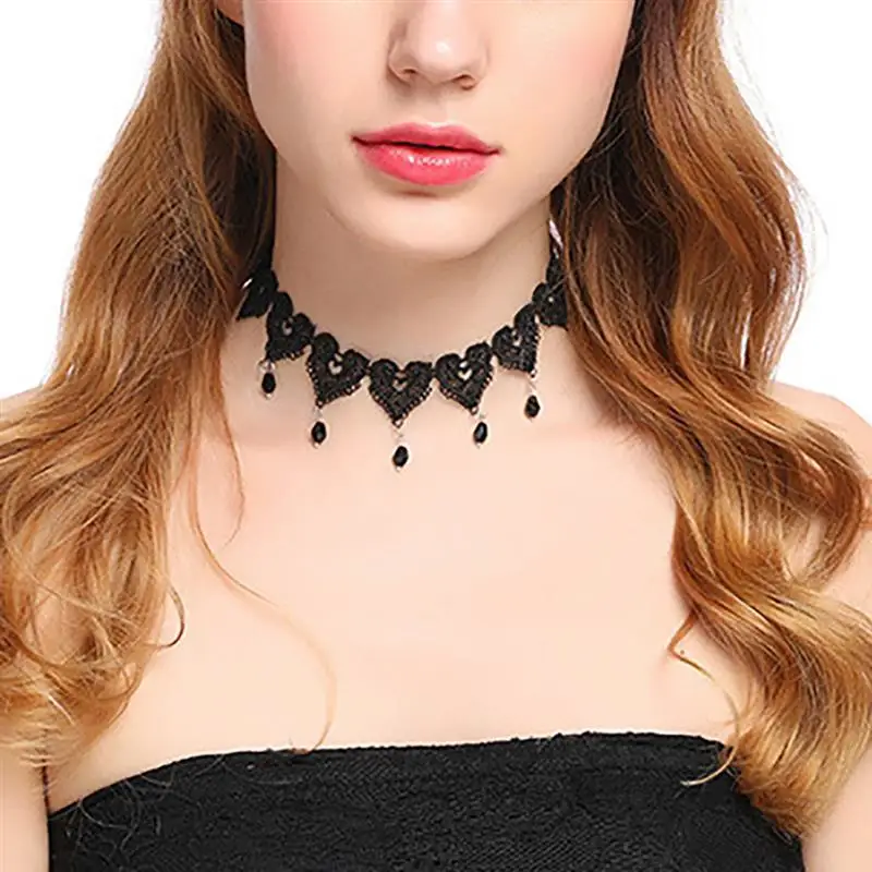 1pc Sexy Choker Necklace Lace Pendant Decor Sexy Clavicle Necklace Charm Clothing Accessories Halloween Party Dress Up