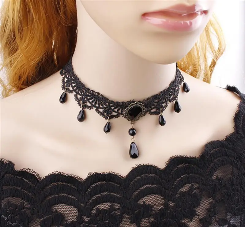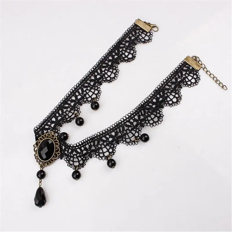 1pc Sexy Women's Gothic Choker Necklace Retro Gothic Crystal Decor Lace Necklace Clothing Accessories For Party Dress Up