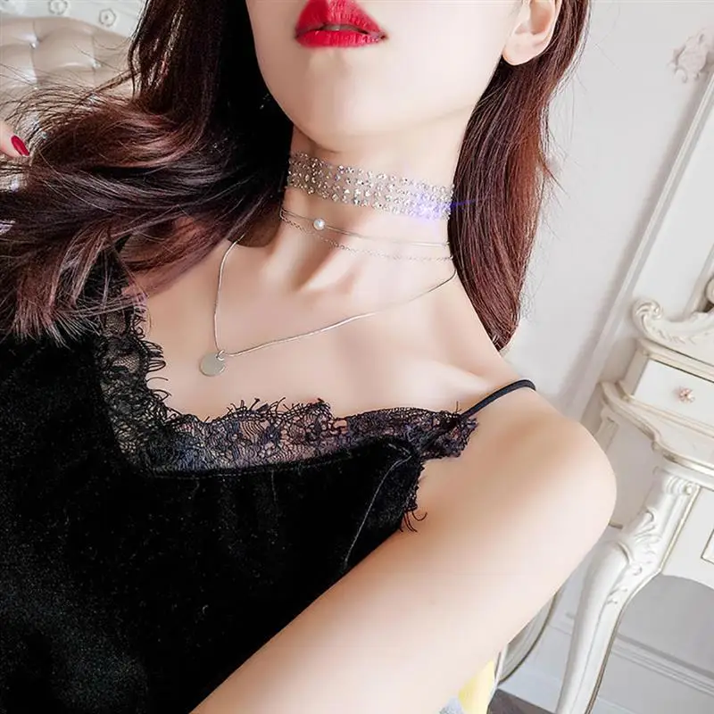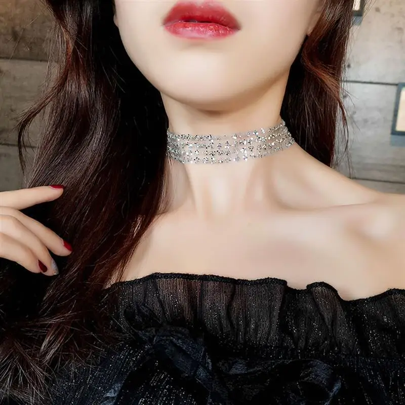 1pc Shining Necklace Sexy Charm Mesh Sequins Choker Necklace Clavicle Necklace Jewelry Accessories For Women Ladies