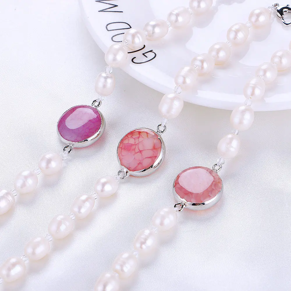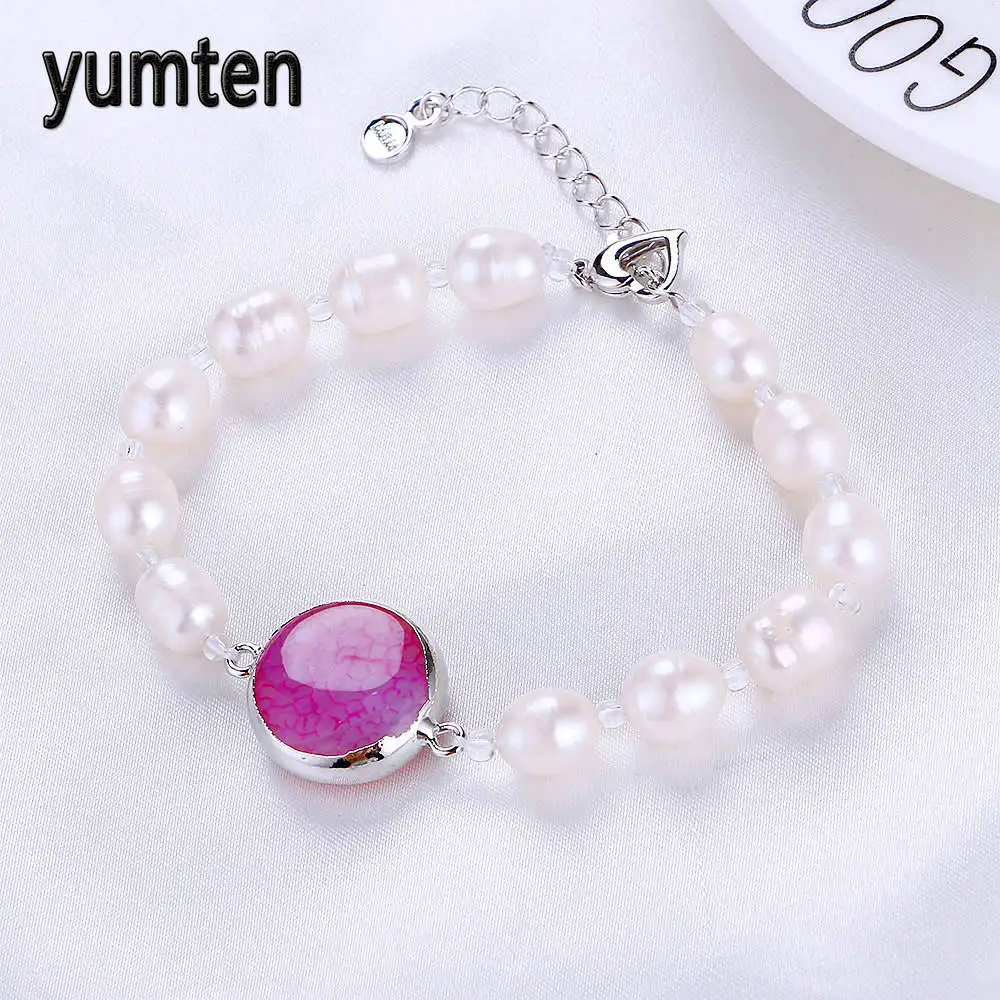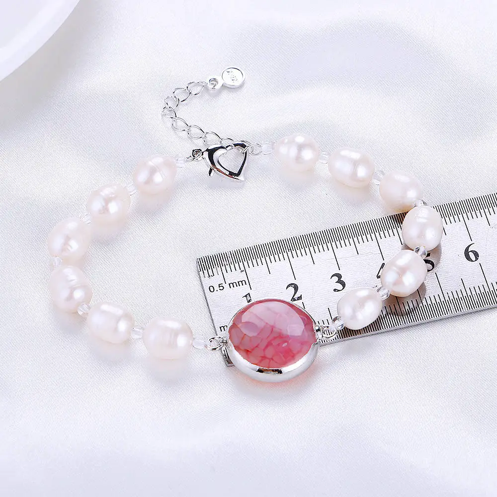 1pc Small Round Pearl Ruby Pearl Bracelet Quality 8-9mm Natural Pearl Bracelet For Women Fashion Accessories Stone