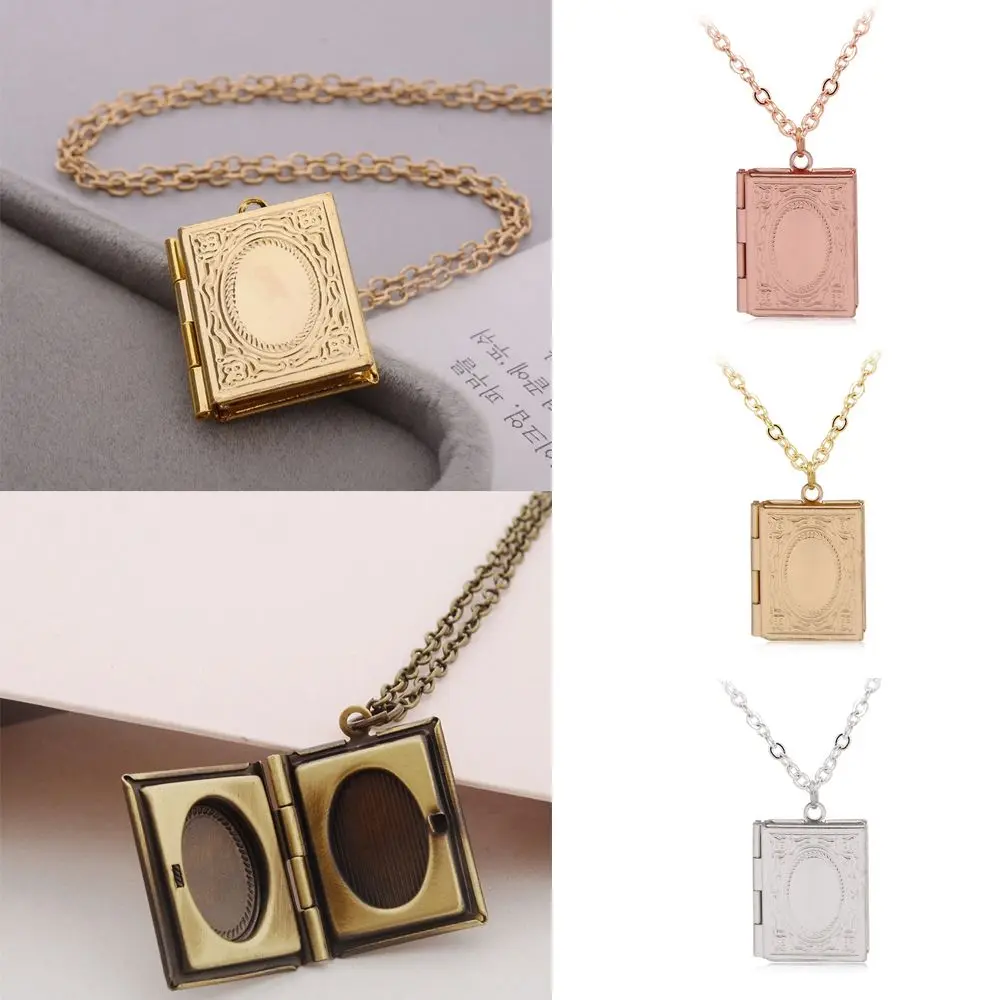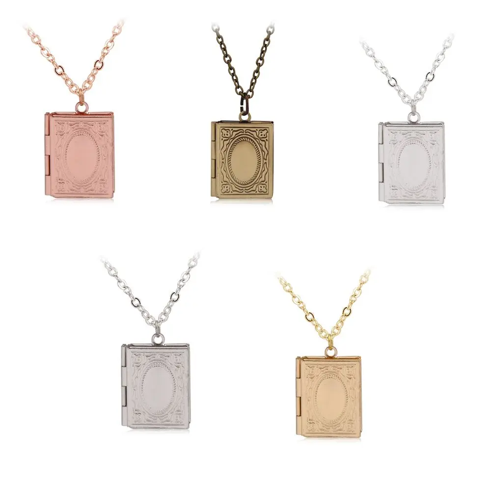 1Pc Square Shaped Necklace Book Design Photo Picture Locket Pendant For Daughters Chain For Girlfriend Friendship Vintage Gift
