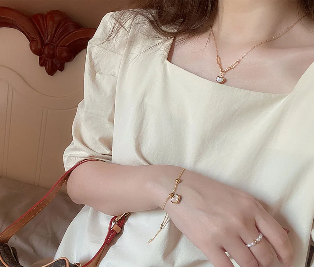 1PC White Mother Necklace Oyster For Women Necklace Sets Heart Shell Barcelet And Choker Sets Wedding Jewelry