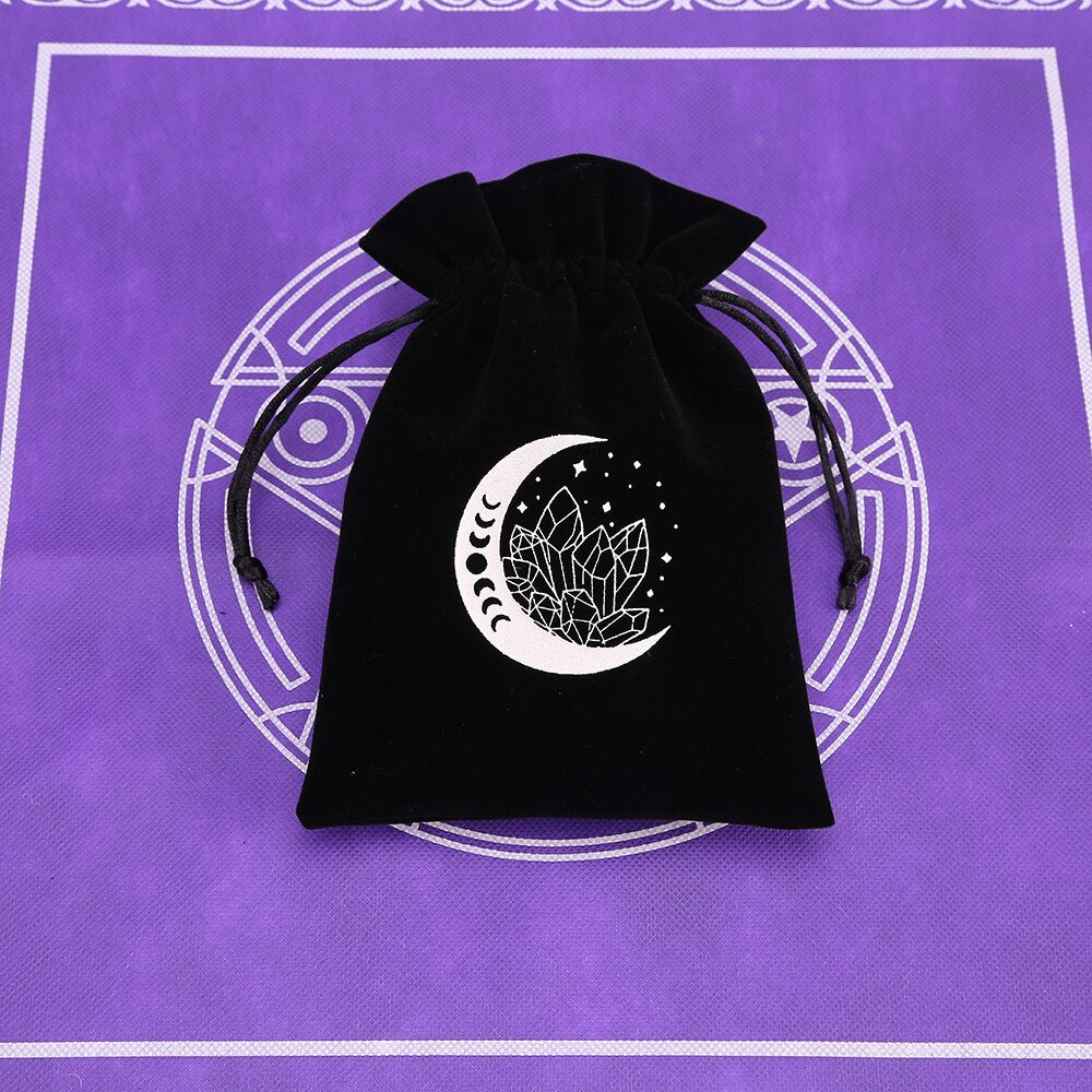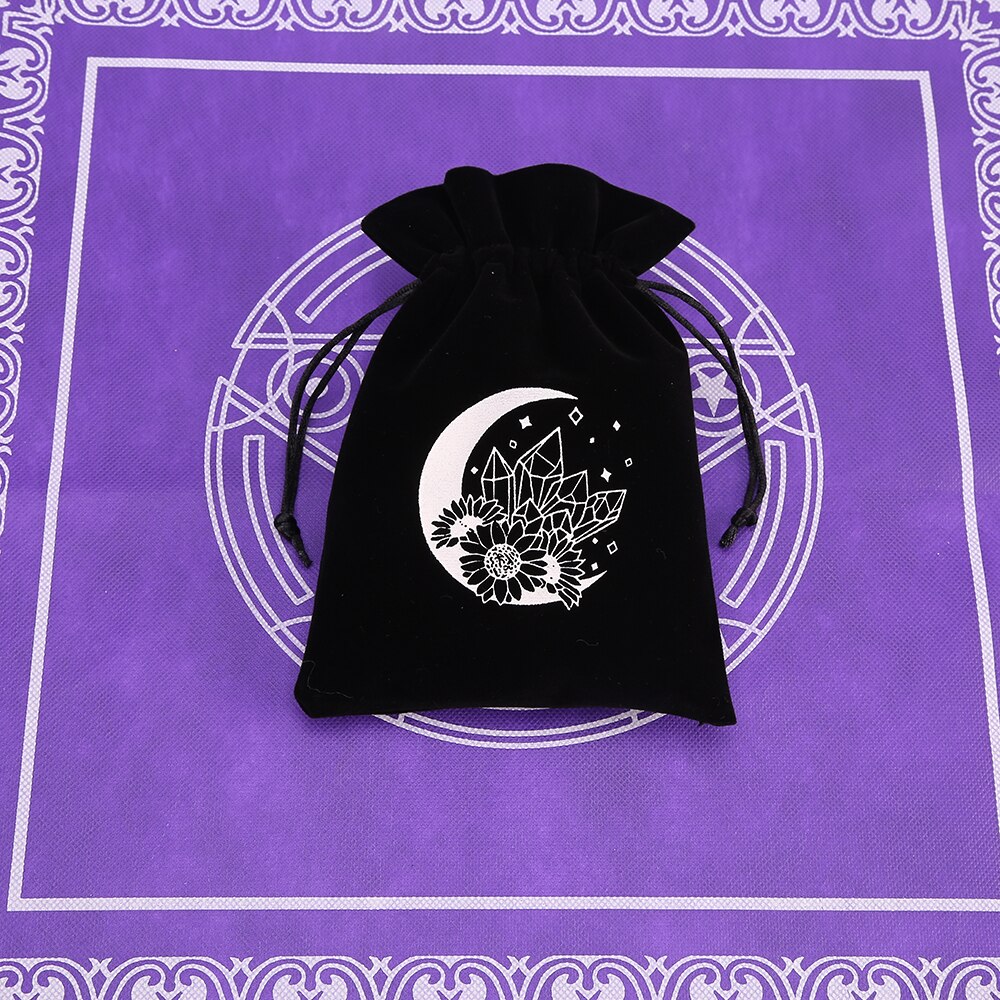 1pcs Black Velvet Moon Phase Tarots Oracle Cards Storage Bag Runes Constellation Witch Divination Accessories Jewelry Dice Bag