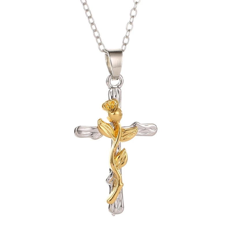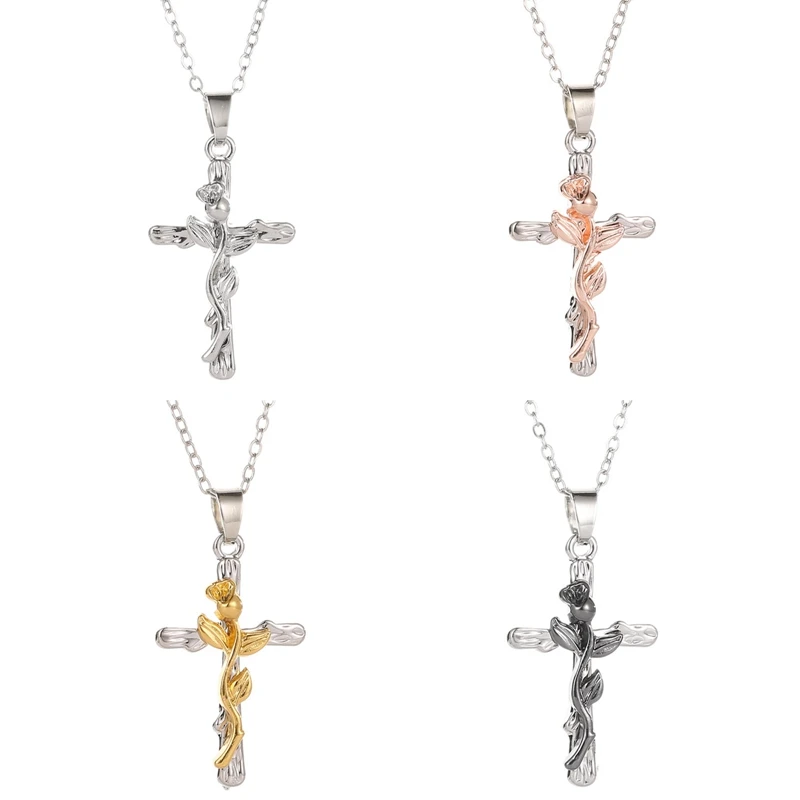 1Pcs Cross Rose Necklace For Women Kpop Classic Vintage Jewellery Gift