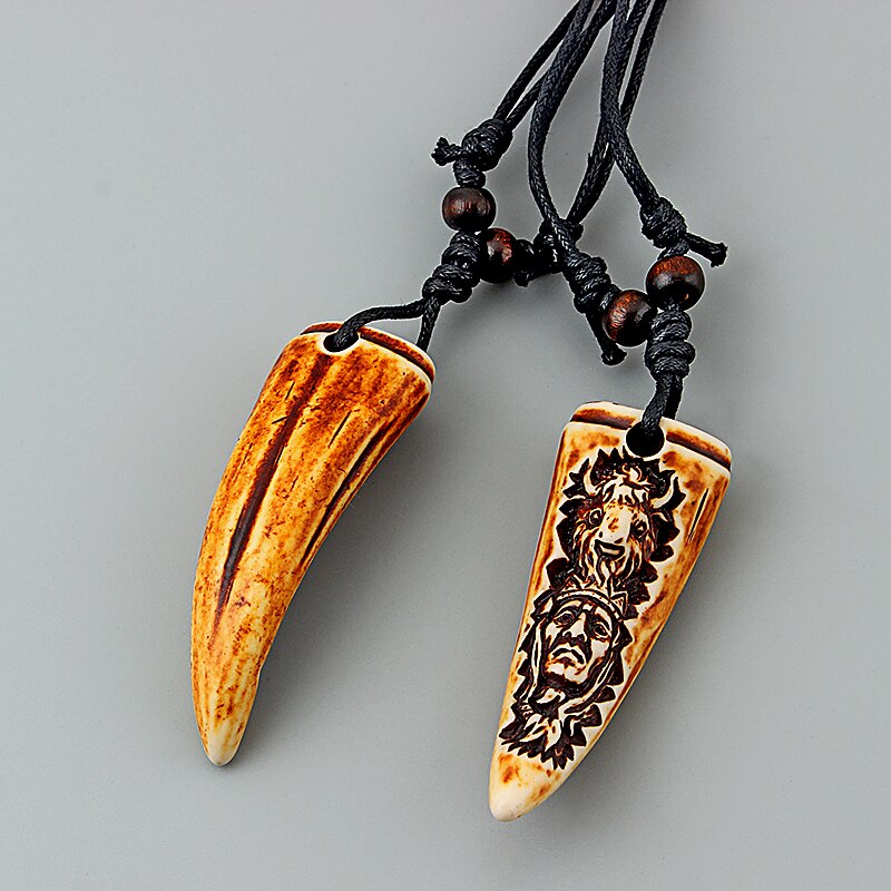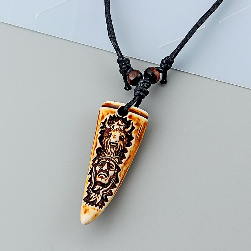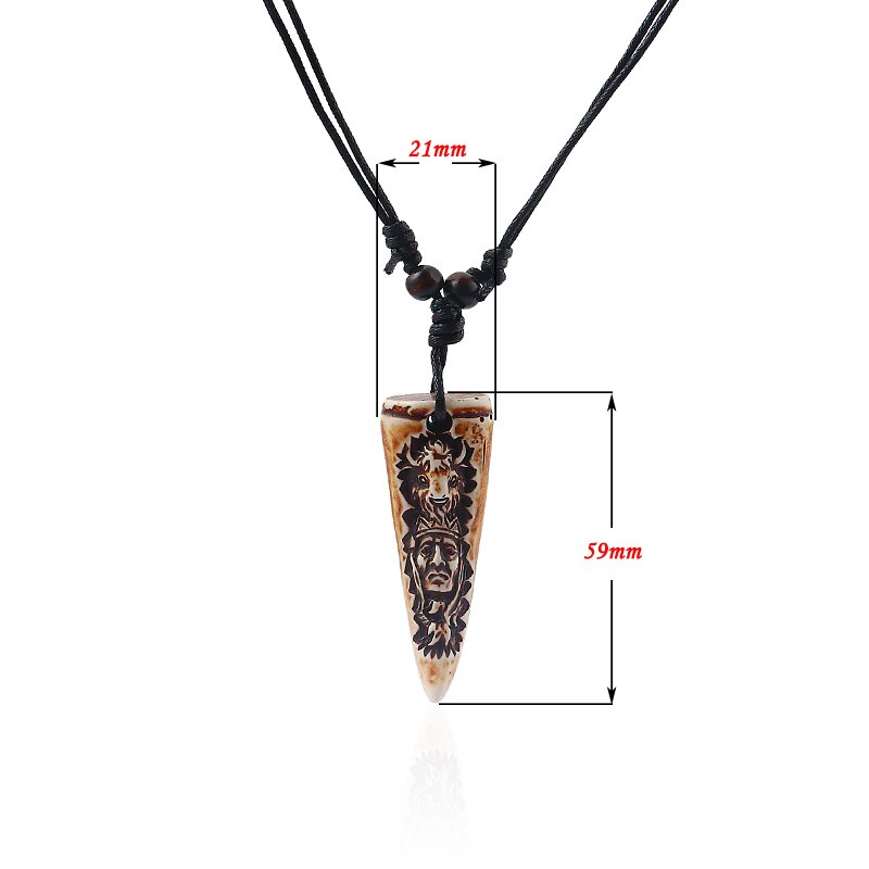 1pcs Faux Yak Bone Tooth/Teeth Pendant Necklace Carve Tribal Leaders ChieftainResin Tooth Charms Wax Cotton Cord Tribal Necklace