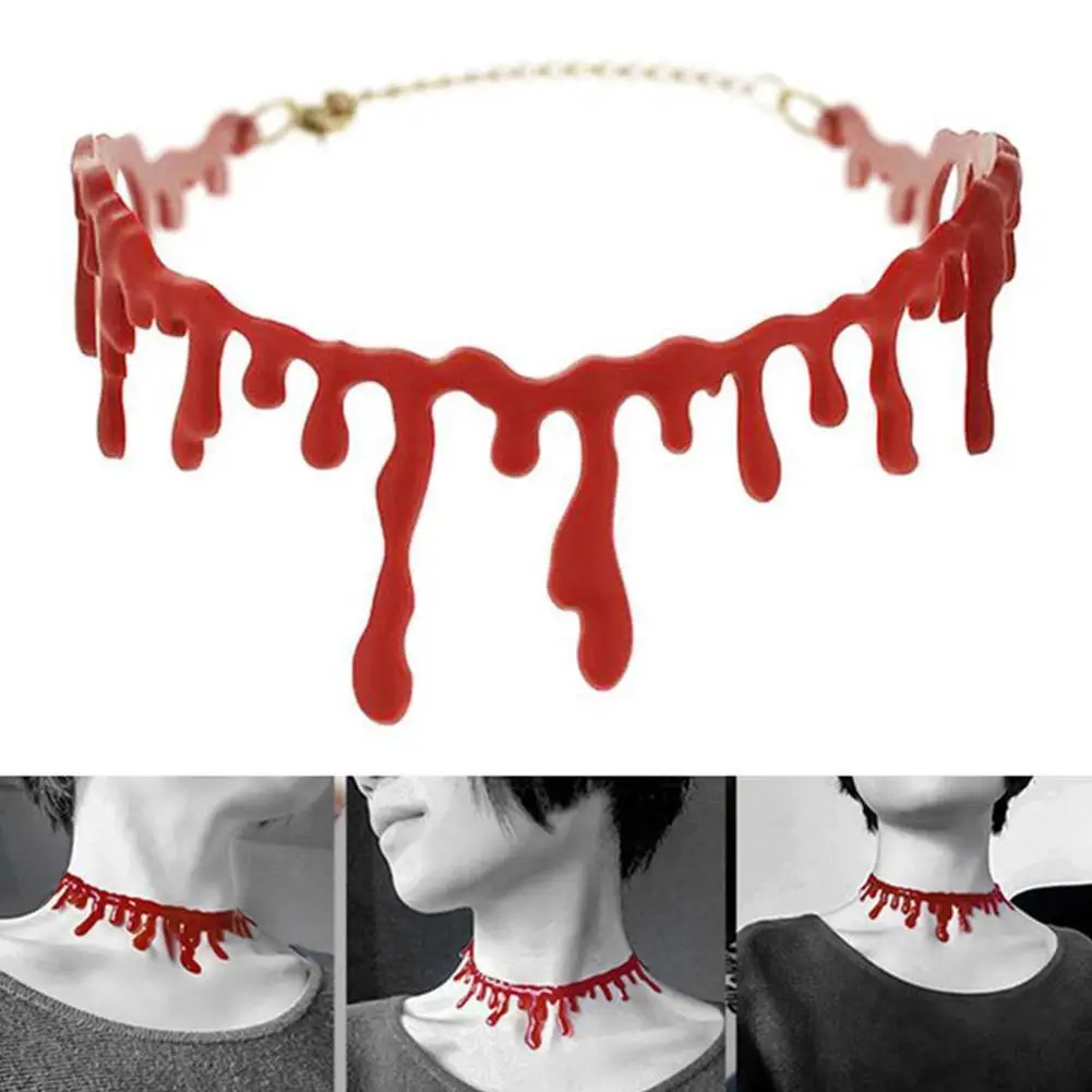 1Pcs Gothic Style Red Blood Drip Necklace Fancy Dress Fun Joke Choker For Women Men Horror Party Jewerly