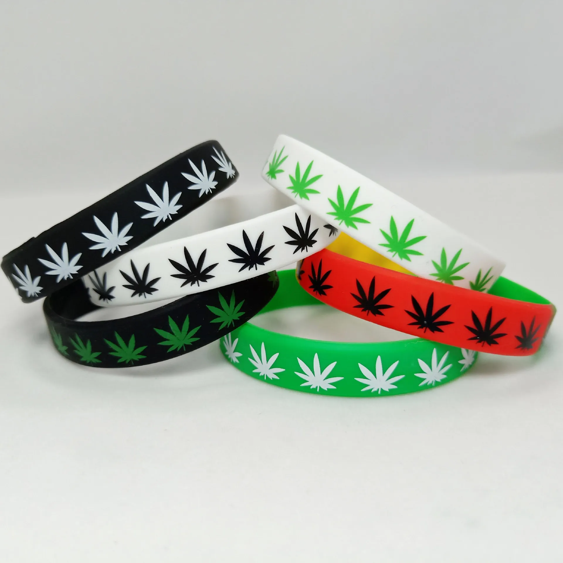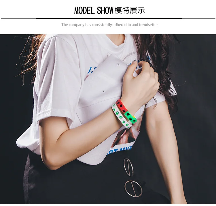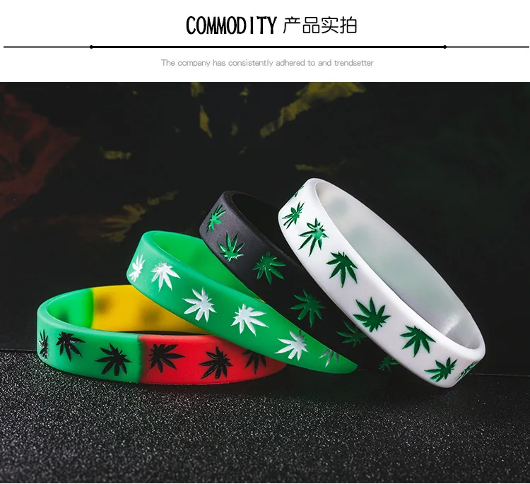 1PCs Hemp Bracelets Trendy Maple Leaf Silicone Rubber Band Wristbands Hand Bangle Men Women Jewelry Gifts