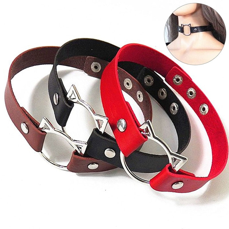 1PCS Punk Harajuku Collar Choker Necklace Kit Head PU Leather Choker Punk Goth Handmade Neck Bracelet Jewelry