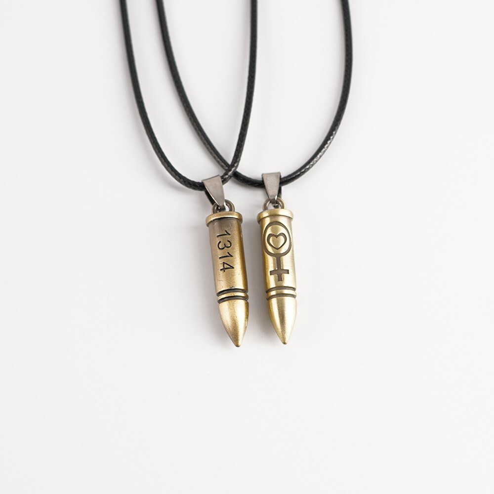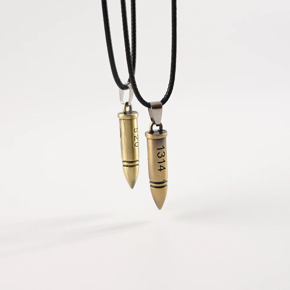 1Pcs Punk Simulation 3D Bullet Necklace Wax Rope Chain 1314 520 Couple Bullet Pendant Necklaces Black Leather Chain