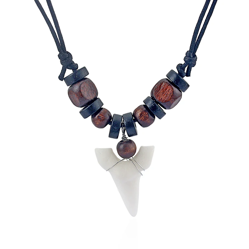 1pcs White Resin Shark Tooth/Teeth Pendant Necklace Waxed Cotton Cord Adjustable Surf Necklace