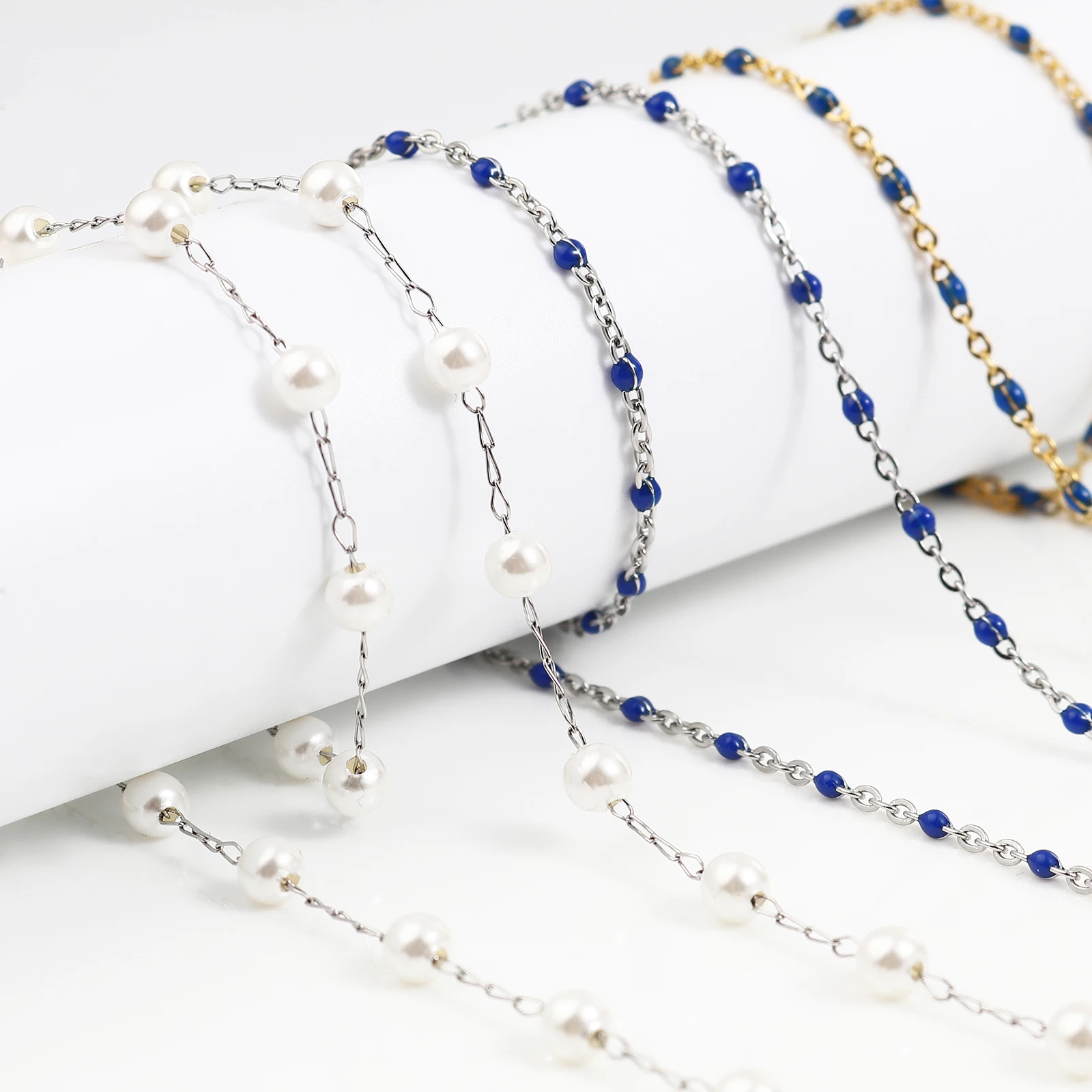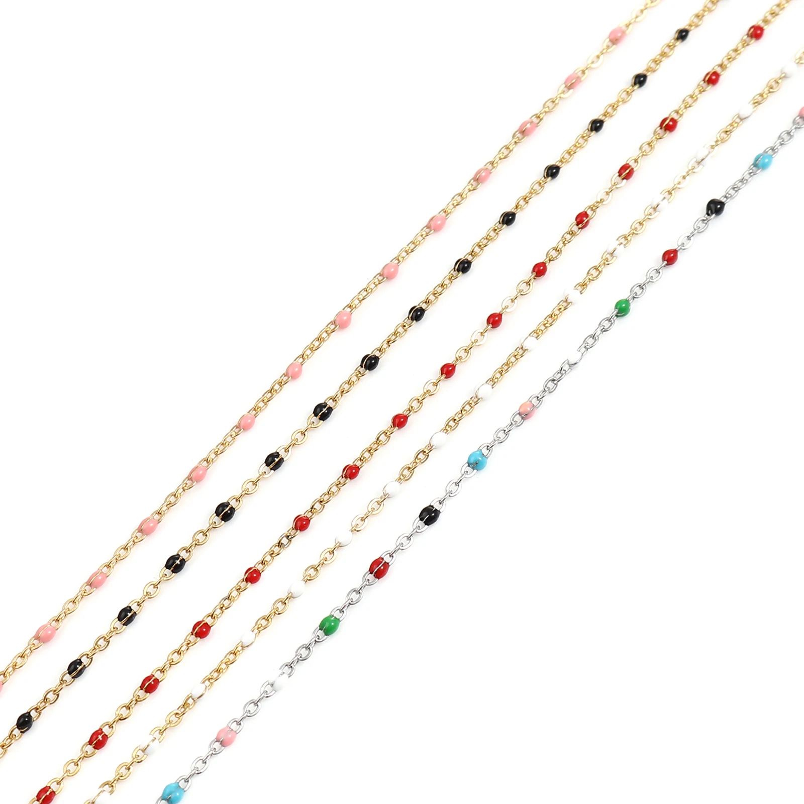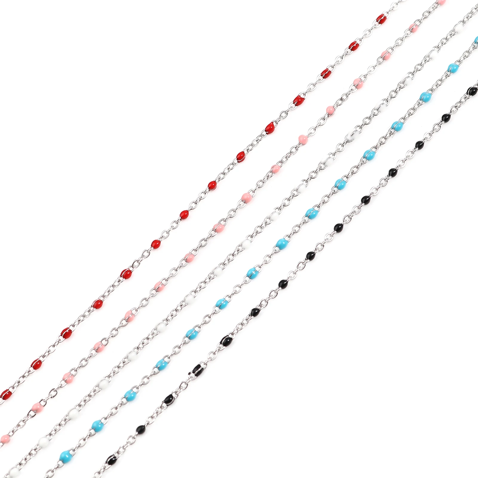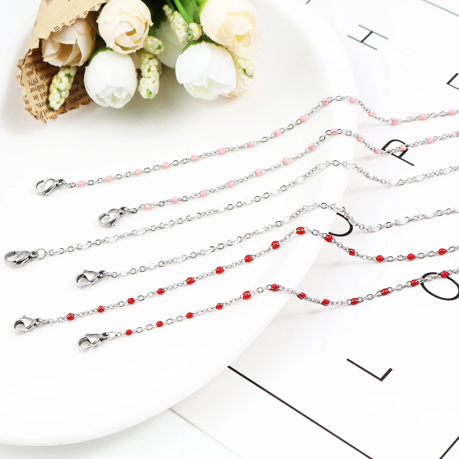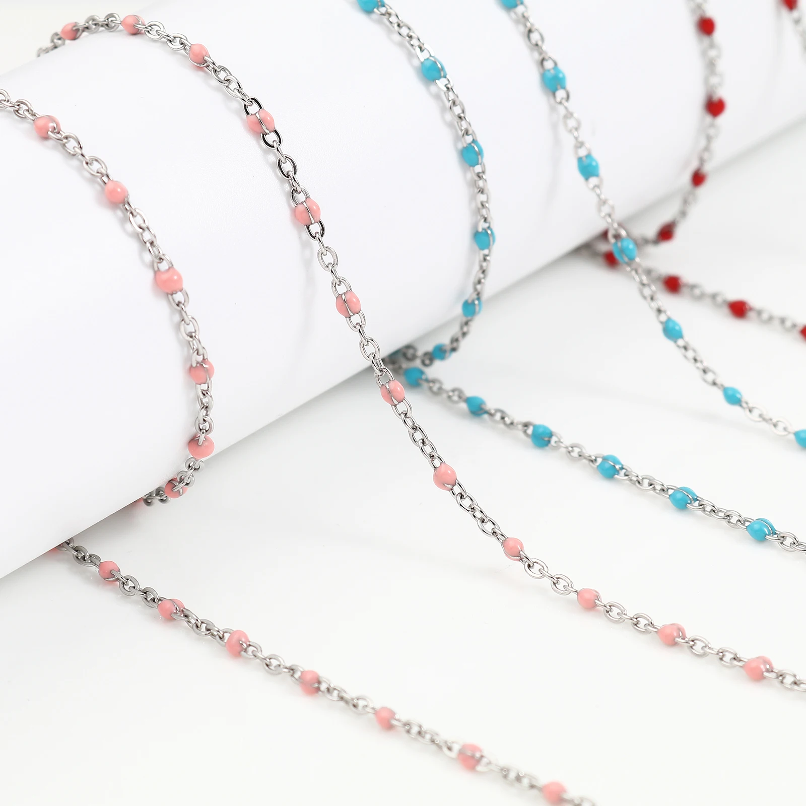 1Piece Stainless Steel Necklace Strap Lariat Lanyard Enamel Beads Chains Necklace 51cm long For Face Hanger Mask Line Decoration