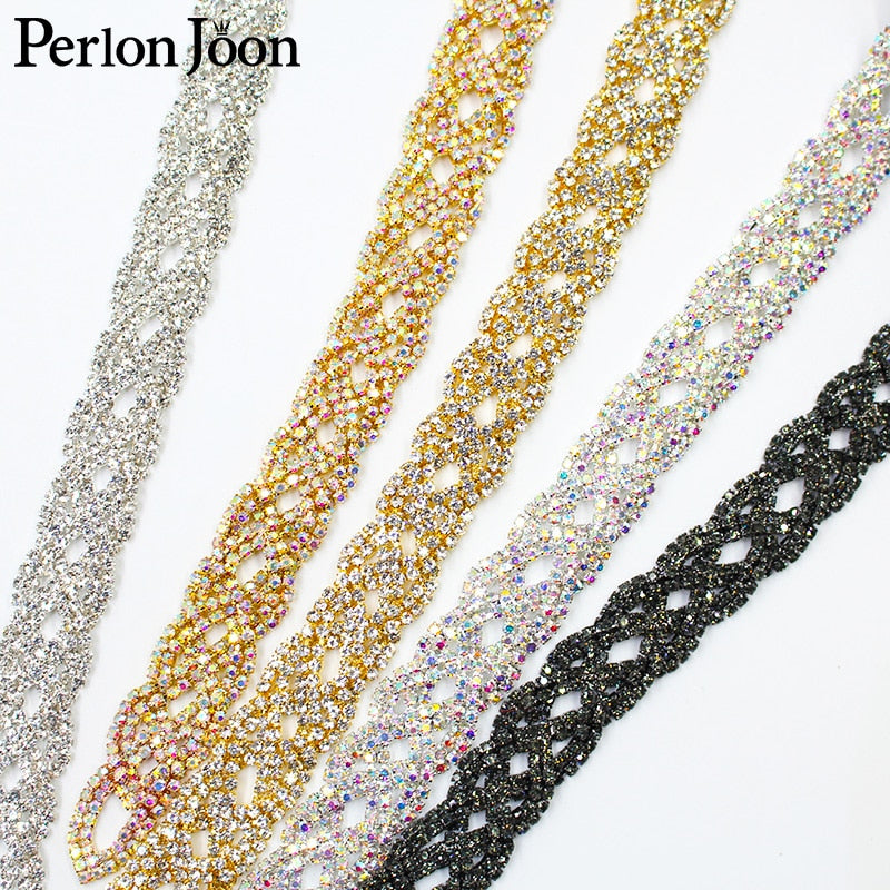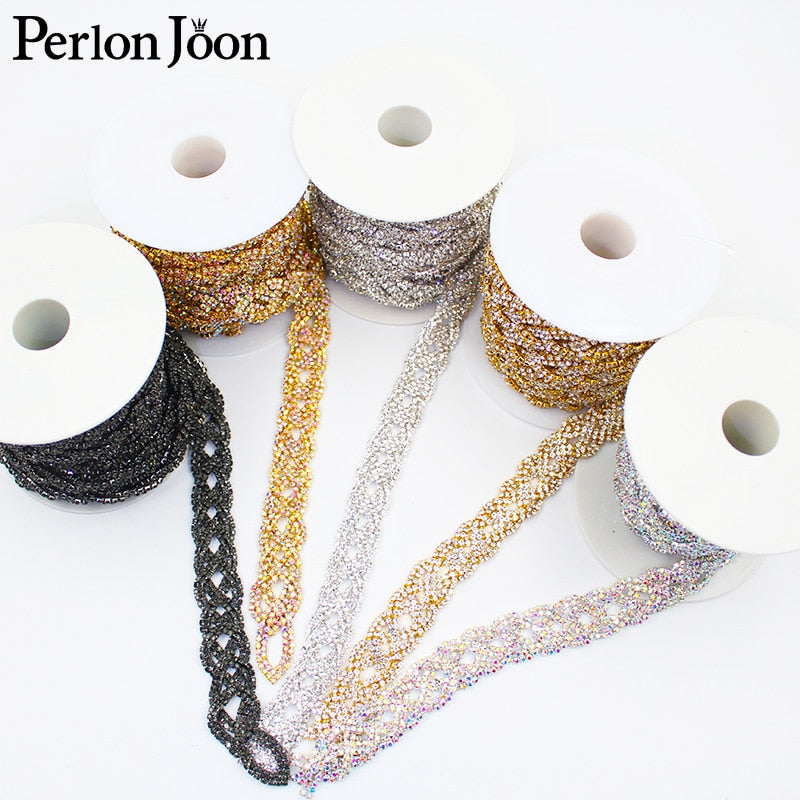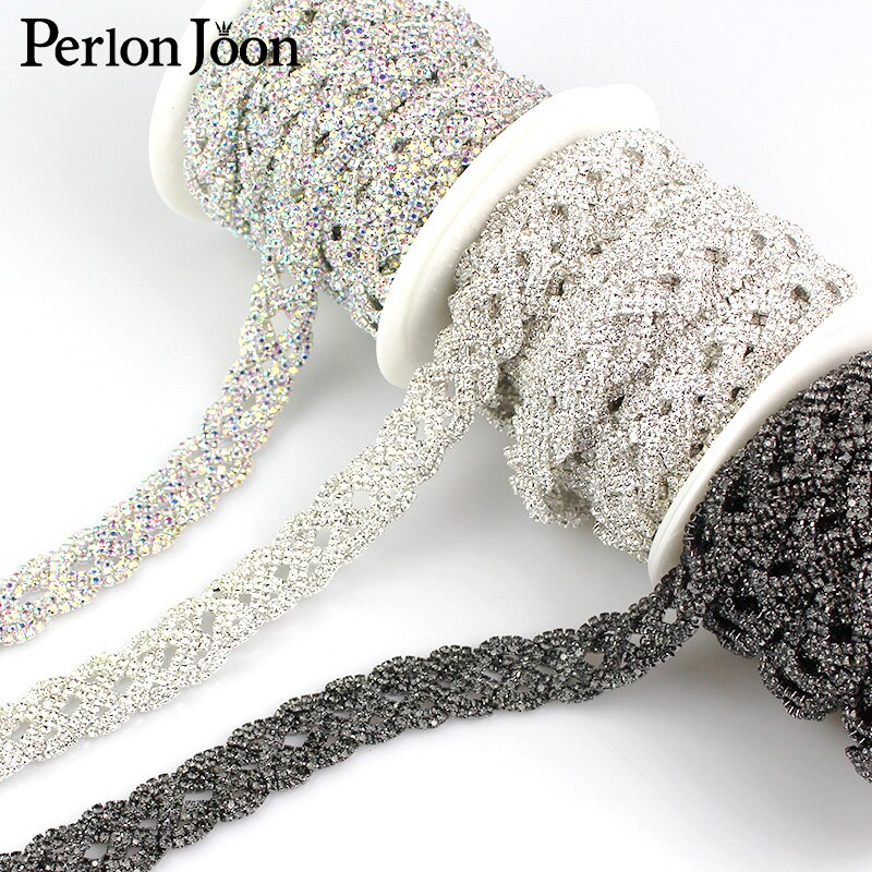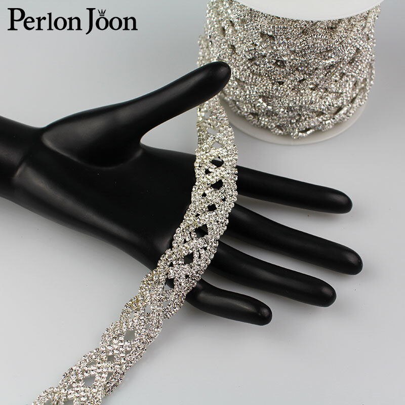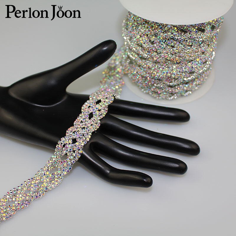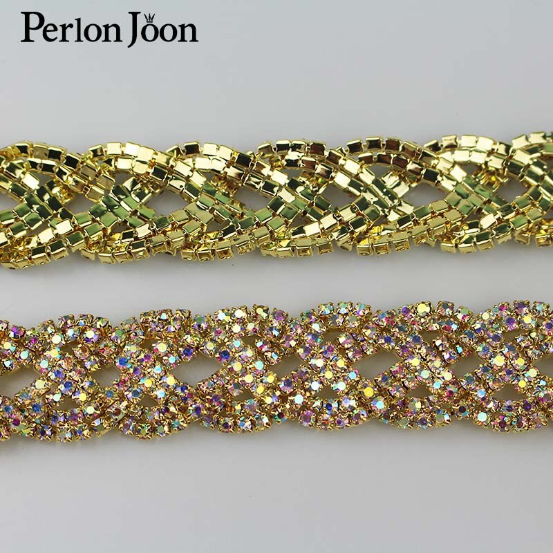 1yard Cross around tape rhinestones trim crystal metal chain welding webbing for dress, bag, shoes accesso ML022
