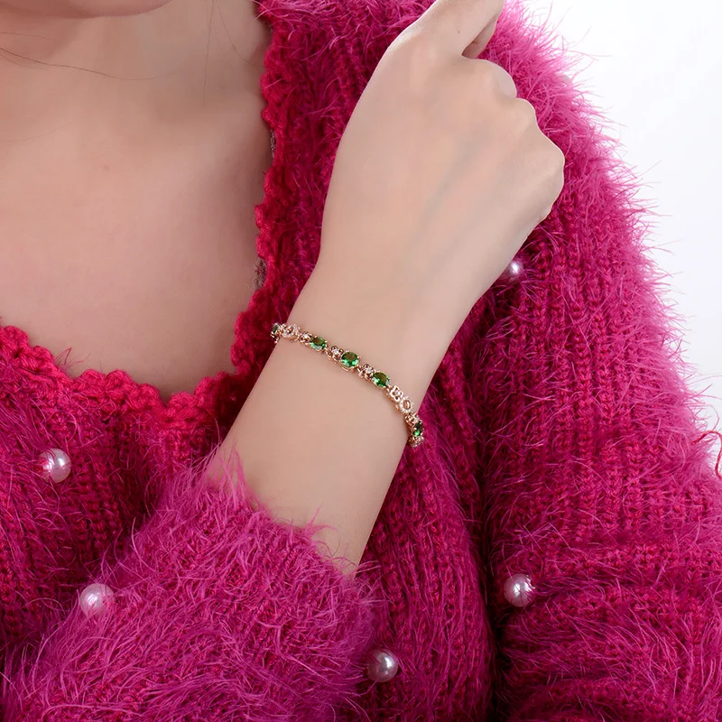 2.03Ct Natural Tsavorite & Diamond Cluster Bracelet Oval 4x6mm and Round 5mm 18K Rose Gold NA0034