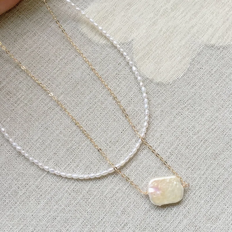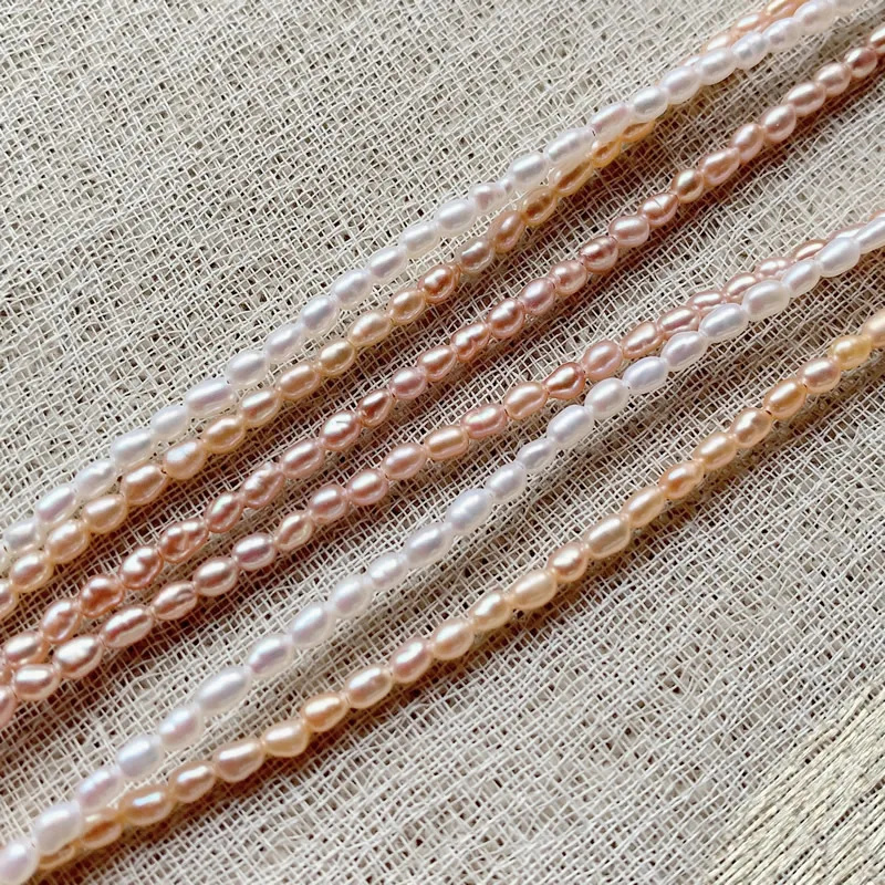 2-3mm Mini Rice Pearl Strand Necklace Simple Shiny Pearls Natural Freshwater Pearl Choker Necklace Jewelry for Women